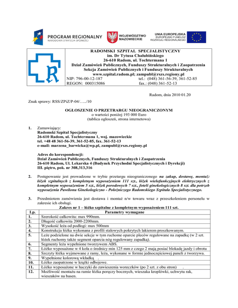 P-04-2010 ogloszenie.. - Radomski Szpital Specjalistyczny im. dr