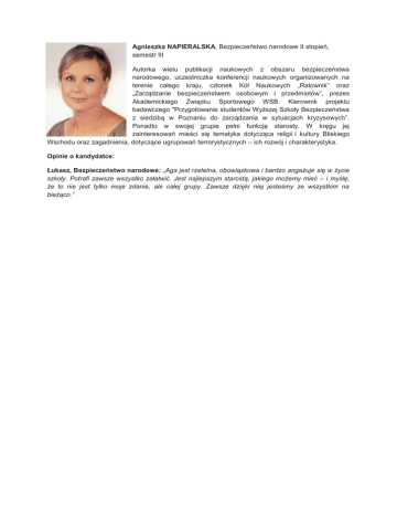 Agnieszka NAPIERALSKA, Bezpieczeństwo narodowe II stopień