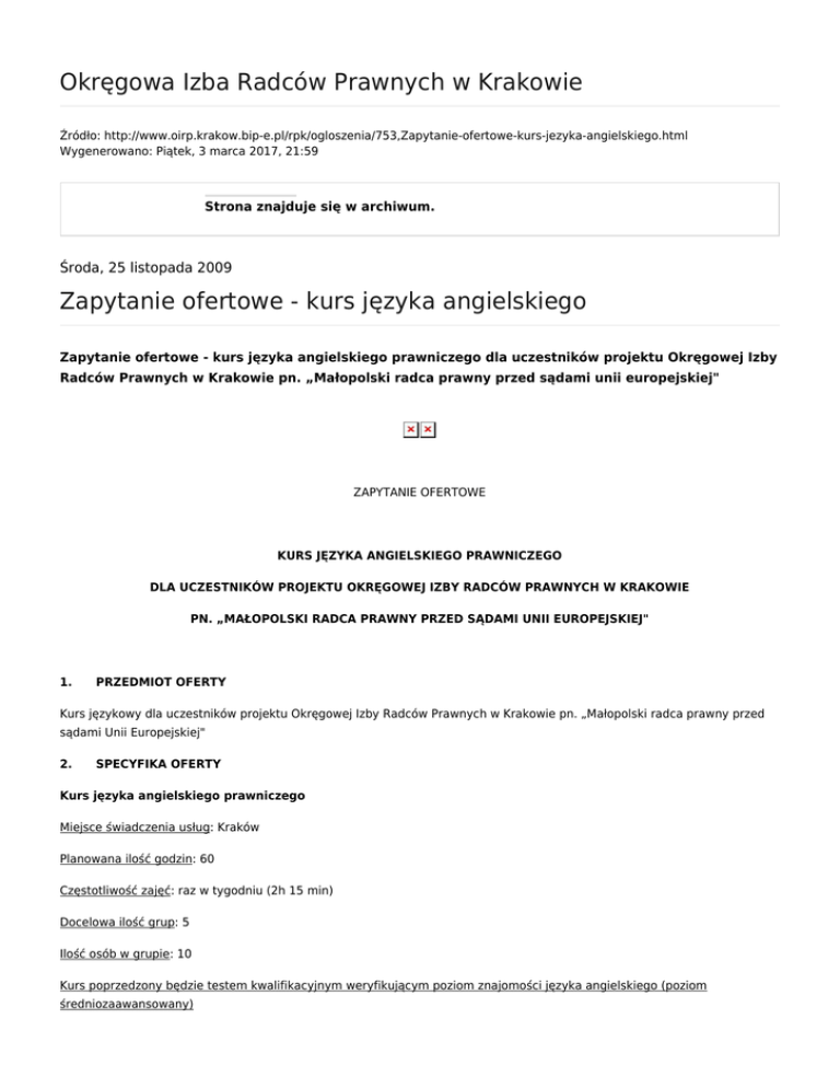 kurs języka angielskiego - Okręgowa Izba Radców Prawnych w