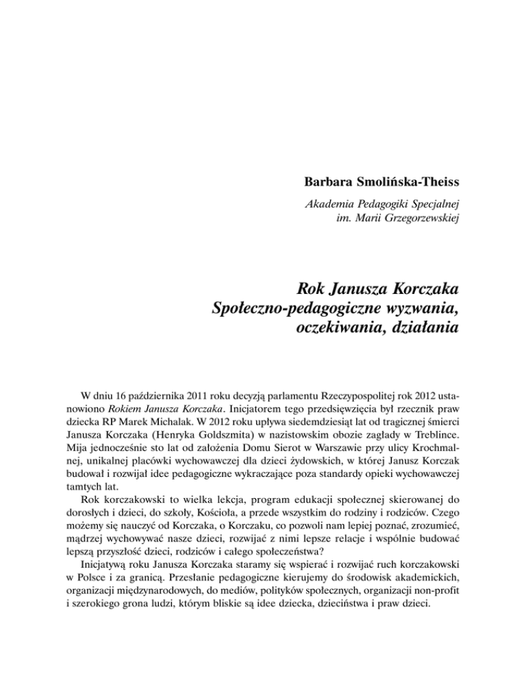 Rok Janusza Korczaka. Społeczno-pedagogiczne