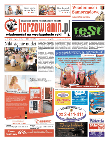 Razem w zyciu, razem w Ruchu Wiadomości Samorządowe Marsz do... szkoły czy przedszkola? ● ● ● str. 8 ● ● ● str. 3 wewnątrz numeru nr 07 (07) l i p i e c 2 0 1 1 r. ISSN 1641-0726 Nikt się nie nudzi wydawnictwo bezpłatne O to, by dzieci i młodzież pozostający w mieście podczas letniej przerwy w nauce, nawet przez chwilę się nie nudziły, dbają jak zwykle organizatorzy rozmaitych wakacyjnych przedsięwzięć. Propozycje są różnorodne, skierowane do młodych ludzi w różnym wieku i o różnych zainteresowaniach. Dużą frekwencją cieszą się spotkania o charakterze półkolonijnym, odbywające się tradycyjnie m.in. w chorzowskich domach kultury. Miejsca na turnusach zaklepane były już na długo przed wakacjami. Ciekawą ofertę dla miłośników przygody z historią mają Muzeum, Skansen i Miejska Biblioteka Publiczna, na preferujących czynny wypoczynek rekreacyj- w w w. c h o r z o w i a n i n . p l ny czekają obiekty Miejskiego Ośrodka Rekreacji i Sportu, chorzowskie baseny i obiekty Stadionu Śląskiego. Wkrótce rozpoczną się półkolonie Towarzystwa Ochrony Praw i God- ności Dziecka „Wyspa”. Trwają półkolonie w klubie Chorzowskiej Spółdzielni Mieszkaniowej (na zdjęciu). Wiele spośród letnich projektów to propozycje bezpłatne. Koszt uczestnictwa w pozostałych skalkulowany jest na przystępnej wysokości. O programie „Lata w mieście” piszemy szerzej na łamach „Wiadomości Samorządowych” wewnątrz numeru. k acji Pocztówk a z wa kurs Letni kon Przyślij do naszej redakcji POCZTÓWKĘ ze swoich tegorocznych wakacji i wygraj atrakcyjne nagrody, m.in. zestawy produktów Crispy Natural i Knorr, książki wydawnictwa Znak, gry planszowe, zaproszenia do klubu „Czekolada” i restauracji McDonald’s. REKLAMA szczegóły na www.chorzowianin.pl. REKLAMA NASZA REKLAMA NA STR. 12 N r 7 (07.2011) Chorzowianin.pl 2 REKLAMA Chorzowianin.pl ●• N r 7 ( 0 7 . 2 0 1 1 ) NASZE MIASTO 3 N r 7 (07.2011) Chorzowianin.pl Marsz do… szkoły czy przedszkola? Rodzice sześciolatków mają nie lada orzech do zgryzienia – posłać dziecko do szkoły czy przedszkola? W przyszłym roku szkolnym problemu nie będzie, bowiem zgodnie z zapowiedzią Ministerstwa Edukacji Narodowej, obowiązkiem szkolnym objęte zostaną wszystkie sześcioletnie dzieci. – Na dzień 29 czerwca, jako uczniów klasy pierwszej zadeklarowanych mamy 123 sześciolatków, co stanowi 18 proc. wszystkich zameldowanych w Chorzowie dzieci z rocznika 2005. To niewiele. Spodziewaliśmy się większej liczby – przyznaje Sylwia Lukoszek, Naczelnik Wydziału Edukacji chorzowskiego UM. W kwietniu list otwarty do rodziców sześcioletnich dzieci wystosował Wiesław Ciężkowski, zastępca prezydenta miasta ds. społecznych, w którym zachęcał do wcześniejszego posyłania dzieci do szkół. Justyna Prelewicz postanowiła zapisać swoją córkę do pierwszej klasy. – Uważam, że jest dobrze przygotowana i sprosta szkolnym obowiązkom. Podejmując decyzję, braliśmy także pod uwagę fakt, iż w przyszłym roku do szkoły równocześnie pójdą dwa roczniki – dzieci sześcio- i siedmioletnie, co oznacza liczniejsze klasy, a w dalszej perspektywie większą konkurencję i trudności w wyborze dobrego gimnazjum czy szkoły średniej, a potem kłopoty na rynku pracy – prognozuje kobieta. Dyrektorzy odwiedzonych przez nas Przedszkoli nr 8 i nr 27 przyznają, że nie wpłynęły do nich w tym roku, żadne podania o przyjęcie sześciolatka. – Otworzymy jeden oddział „zerówki”. Będą to dzieci, które kontynuują pobyt u nas – mówi Joanna Bryzik, dyrektor Przedszkola nr 27. Rodzice na podjęcie decyzji o posłaniu pociechy do szkoły maja czas do końca sierpnia. Do szkół mogą trafić sześcioletnie dzieci, które w minionym roku objęte były opieką przedszkolną bądź, w przypadku, kiedy z opieki placówki nie korzystały, zostały pozytywnie zaopiniowane przez Poradnię Psychologiczno- Pedagogiczną. Tegorocznemu naborowi do przedszkoli towarzyszyło wiele emocji. – Pierwszego dnia rekrutacji przed naszymi drzwiami ustawiła się kolejka rodziców. Zgodnie z przewidywaniami, najliczniejszą grupę zgłaszanych dzieci stanowiły trzylatki. Niestety część rodziców odesłana zostanie z kwitkiem, bo w pierwszej kolejności mamy obowiązek przyjęcia do przedszkola dzieci sześcio - oraz pięcioletnich. Spotykamy się z dyrektorami placówek, konsultujemy się i weryfikujemy listy, bowiem często okazuje się, że malec zapisany jest do kilku przedszkoli równocześnie. Ostateczna lista przyjętych dzieci znana będzie z początkiem września – przyznaje Danuta Neukrich, dyrektor Przedszkola nr 8. Sylwia Lukoszek, Naczelnik Wydziału Edukacji, potwierdza, iż najdłuższą listę oczekujących na przyjęcie do przedszkola stanowią najmłodsze dzieci. – Na liście oczekujących na przyjęcie trzy i czterolatków figuruje 865 nazwisk, z czego młodsza grupa stanowi 585 osób. Zdaniem Syl- Foto: Paweł Mikołajczyk Wakacje, wakacjami a w oświacie się dzieje. Ilu chorzowskich sześciolatków pójdzie w tym roku do szkoły? Najtrudniej o miejsce w przedszkolu dla trzylatka. Zmienia się odpłatność za pobyt dziecka w placówce. W ubiegłym roku szkolnym, w Szkole Podstawowej nr 37 z sukcesem otwarto klasę złożoną z samych sześciolatków. wii Lukoszek tu pomocne mogą okazać się prywatne placówki. Takich miejsc w naszym mieście nie brakuje, jednak barierę mogą stanowić koszta – podkreśla. Na ostatniej 9. Sesji Rady Miasta podjęto uchwałę o zmianie odpłatności za świadczenia przedszkoli publicznych prowadzonych przez miasto. Nowelizacja związana była z koniecznością dostosowania prawa miejscowego do ustawy oświatowej, gwarantującej bezpłatny pięciogodzinny pobyt dziecka w przed- szkolu. Nowa uchwała, zapewnia nieodpłatny pobyt dziecka w placówce w godzinach od 8.00 do 13.00 Za każdą godzinę wykraczającą poza podstawę