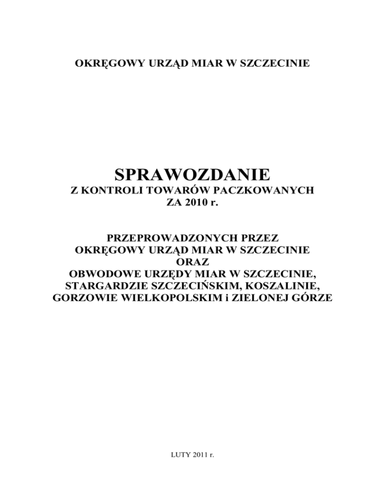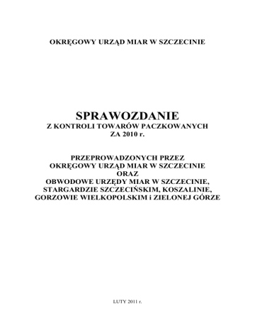 OKRĘGOWY URZĄD MIAR W SZCZECINIE SPRAWOZDANIE Z