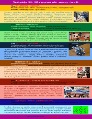 Na rok szkolny 2016 / 2017 proponujemy wybór następujących profili: