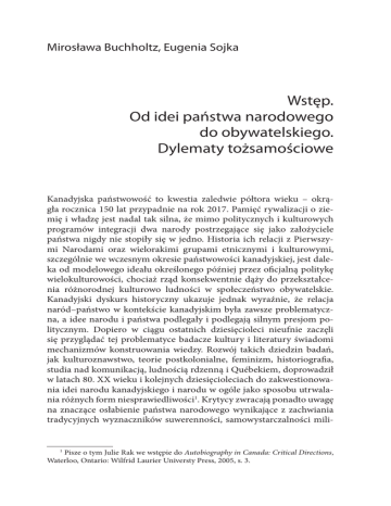 ciągłym redefinicjom pojęcia narodu, państwowości i tożsamości w kontekście kanadyjskich badań literackich i kulturowych. Autorzy esejów, kanadyści z Polski i Kanady, debatują nad problematyką dotyczącą tych kategorii w powiązaniu, między innymi, z dyskursami etniczności, rasy czy płci