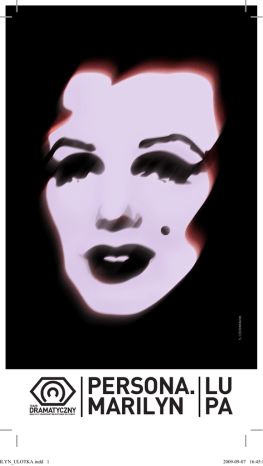ILYN_ULOTKA.indd 1 PERSONA. LU MARILYN PA 2009-09-07 16:45:1 PERSONA. MARILYN scenariusz, reżyseria i scenografia: Krystian Lupa muzyka: Paweł Szymański kostiumy: Piotr Skiba współpraca dramaturgiczna: Marcin Zawada projekcje wideo: Jan Przyłuski fotografie: Katarzyna Pałetko produkcja: Małgorzata Cichulska asystent reżysera: Katarzyna Kalwat asystent scenografa: Jan Polivka występują: Marcin Bosak, Krzysztof Dracz, Adam Ferency, Katarzyna Figura, Adam Graczyk, Henryk Niebudek, Zbigniew W. Kaleta (gośc.), Sandra Korzeniak, Władysław Kowalski, Małgorzata Maślanka (gośc.), Jolanta Olszewska, Agnieszka Roszkowska, Piotr Skiba, Andrzej Szeremeta, Marcin Tyrol, Agnieszka Wosińska premiera 18 kwietnia 2009 roku na Dużej Scenie Teatru Dramatycznego m.st. Warszawy im. Gustawa Holoubka Jest oczywiście sporo celebrities, którzy zmienili nazwiska na mające „nieść sukces” pseudonimy i pewnie nie jedna tylko Marilyn przeżywała to osobiście – jako akt rozdzielenia dwóch person (albo oddzielenia osoby od persony), akt rozdzielenia dwóch żyć. U Marilyn jest to jednak niebywale ekstremalne, schizofrenicznie (czy może symbolicznie) drastyczne – rytualne. Z momentem zmiany nazwiska wiąże się również zmiana wyglądu (dwie operacje plastyczne, ostateczna zmiana koloru włosów) – jakby odcięcie się od jakiejś haniebnej przeszłości, odcięcie od fałszywej drogi, odcięcie fałszywego pędu (gałęzi), który zawiera w sobie determinację negatywnego losu, losu straconego, losu płynącego wprost do ścieku, do śmietnika. Marilyn ma być magiczną figurą – zawierającą moc i niezależność od tamtego. Krystian Lupa, notatki z prób BILETY MOŻNA KUPIĆ w kasie Teatru Dramatycznego poniedziałek – piątek: 12.00–15.00, 16.00–20.00 sobota: 16.00–20.00 niedziela (tylko w dniu spektaklu): 16.00–20.00 zakup biletu w teatrze gwarantuje cenę podstawową na mieście EMPiK: Arkadia, Blue City, Junior Mega, Nowy Âwiat Mega, Promenada, Sadyba, Złote Tarasy kasy biletowe w centrach handlowych: E. Leclerc, Galeria Mokotów, Promenada, Reduta, Targówek, Wola Park on-line www.ticketonline.pl bilet zakupiony poza siedzibą teatru zawiera marżę dystrybutora zewnętrznego Biuro obsługi widzów odpowie na Państwa pytania związane z repertuarem, rezerwacją biletów, promocją dla grup zorganizowanych (pon – pt: 10.00–16.00). tel.: 22 656 6844, [email protected], fax: 22 826 3872 ILYN_ULOTKA.indd 2 PATRONI MEDIALNI: 2009-09-07 16:45:1