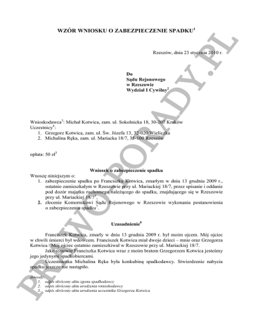 Wniosek o zabezpieczenie spadku - wzór - prawo