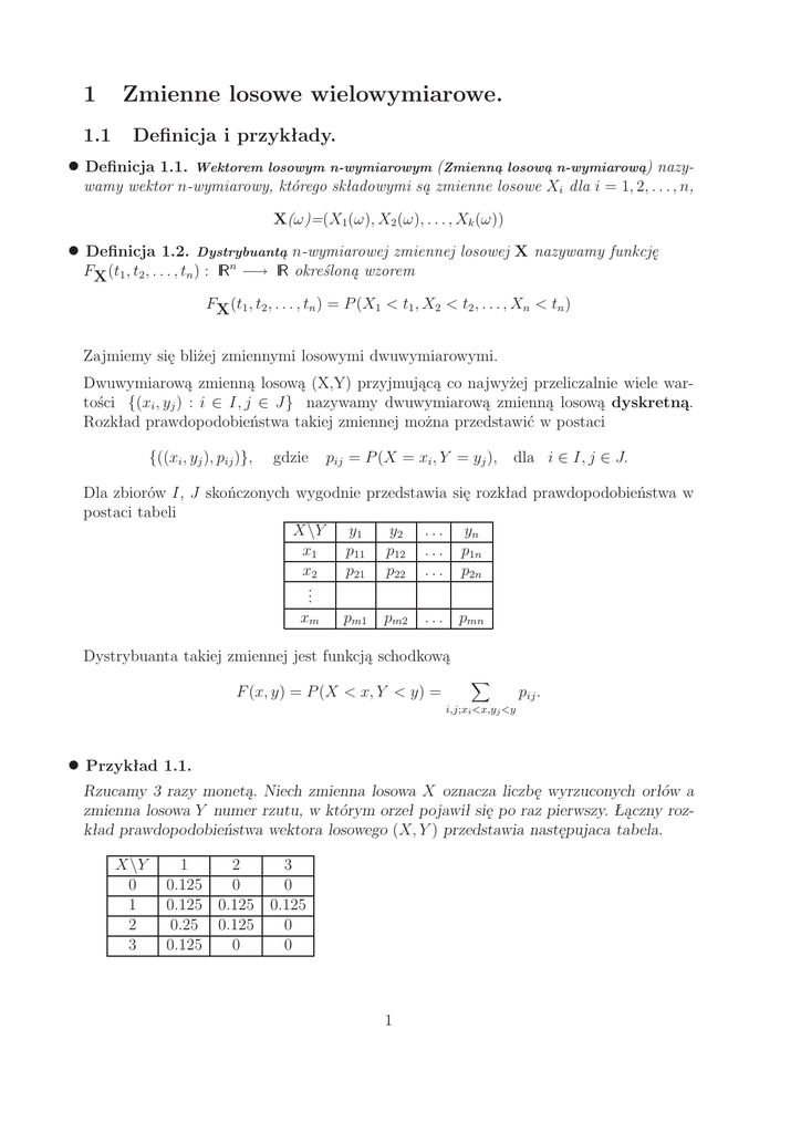1 Zmienne losowe wielowymiarowe.