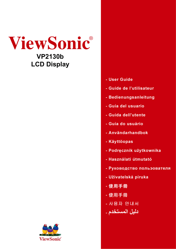 ® ViewSonic VP2130b LCD Display Spis treúci TCO informacja ................................................................................................ i Oświadczenia o zgodności z przepisami ........................................................1 Ważne instrukcje bezpieczeństwa...................................................................2 Prawo autorskie informacja .............................................................................3 Rejestracja produktu........................................................................................3 Wprowadzenie Zawartość opakowania ...................................................................................4 Środki ostrożności ..........................................................................................4 Szybka instalacja ............................................................................................5 Tryby widoku/Poziomy i pionowy ....................................................................6 Podnoszenie i opuszczanie ekranu ................................................................6 Przygotowanie do montażu na ścianie (Opcja) ..............................................7 Korzystanie z monitora LCD Display Ustawianie trybu synchronizacji .....................................................................8 Ustawienia blokady menu ekranowego OSD i przycisku zasilania ................8 Regulacja obrazu ............................................................................................9 Elementy sterujące menu głównego ............................................................. 11 Inne informacje Dane techniczne ...........................................................................................15 Rozwiązywanie problemów ..........................................................................16 Pomoc techniczna klienta .............................................................................17 Czyszczenie monitora LCD Display .............................................................18 Limited Warranty ..........................................................................................19 ViewSonic VP2130b TCO informacja Congratulations! You have just purchased a TCO’99 approved and labelled product! Your choice has provided you with a product developed for professional use. Your purchase has also contributed to reducing the burden on the environment and also to the further development of environmentally adapted electronics products. Why do we have environmentally labelled computers? In many countries, environmental labelling has become an established method for encouraging the adaptation of goods and services to the environment. With the growing manufacture and usage of electronic equipment throughout the world, there is a recognized concern for the materials and substances used by electronic products with regards to their eventual recycling and disposal. By proper selection of these materials and substances, the impact on the environment can be minimized. There are also other characteristics of a computer, such as energy consumption levels, that are important from the viewpoints of both the work (internal) and natural (external) environments. Electronic equipment in offices is often left running continuously, resulting in unnecessary consumption of large amounts of energy and additional power generation. From the standpoint of carbon dioxide emissions alone, it is vital to save energy. What does labelling involve? The product meets the requirements for the TCO’99 scheme which provides for international and environmental labelling of personal computers and/or displays. The labelling scheme was developed as a joint effort by the TCO (The Swedish Confederation of Professional Employees), Svenska Naturskyddsforeningen (The Swedish Society for Nature Conservation) and Statens Energimyndighet (The Swedish National Energy Administration). Approval requirements cover a wide range of issues: ecology, ergonomics, emission of electrical and magnetical fields, energy consumption and electrical safety. Ecological criteria impose restrictions on the presence and use of heavy metals, brominated and chlorinated flame retardants, and other substances. The product must be prepared for recycling and the manufacturing site(s) shall be certified according to ISO14001 or EMAS registered. Energy requirements include a demand that the system unit and/or display, after a certain period of inactivity, shall reduce its power consumption to a lower level in one or more stages. The length of time to reactivate the system unit shall be reasonable for the user. Labelled products must meet strict environmental demands, for example, in respect of the reduction of electrical and magnetical fields as well as work load and visual ergonomics. ViewSonic VP2130b i Below you will find a brief summary of the ecological requirements met by this product. The complete ecological criteria document can be found at TCO Development’s website http://www.tcodevelopment.com or may be ordered from: TCO Development SE-114 94 STOCKHOLM, Sweden Fax: +46 8 782 92 07 E-mail: [email protected] Information regarding TCO’99 approved and labelled products may also be obtained at http://www.tcodevelopment.com Ecological requirements Flame retardants Flame retardants may be present in printed wiring board laminates, cables, and housings. Their purpose is to prevent, or at least to delay the spread of fire. Up to 30% by weight of the plastic in a computer casing can consist of flame retardant substances. Many flame retardants contain bromine or chlorine, and these flame retardants are chemically related to PCBs (polychlorinated biphenyls). Both the flame retardants containing bromine or chlorine and the PCBs are suspected of giving rise to health effects, including reproductive damage in fisheating birds and mammals, due to the bio-accumulative* processes when not disposed of in a