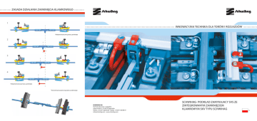 :::::::::::::::::::::::::::::::::::::::::::::::::::::::::::::::::::::::::::::::::::::::::::::::::: ZASADA DZIAŁANIA ZAMKNIĘCIA KLAMROWEGO 1 INNOWACYJNA TECHNIKA DLA TORÓW I ROZJAZDÓW ::::::::::::::::::::::::::::::::::::::::::::::::::::::::::::::::::::::::::::::::::::::::::::::::::::::::::::::::::::::::::::::::::::::::::::::::::::::::::::::::::::::::::::::::::::::::::::::::::::::::: Położenie końcowe prawe, zamknięte 2 * 3 4 Położenie końcowe lewe, zamknięte * kierunek poruszania się pręta suwakowego SCHWIHAG AG Technika dla torów i rozjazdów Lebernstraße 3, CH-8274 Tägerwilen Telefon +41(0)71 666 88 00 Telefax +41(0)71 666 88 01 [email protected] www.schwihag.com SCHWIHAG- PODKŁAD ZAMYKAJACY SVS ZE ZINTEGROWANYM ZAMKNIĘCIEM KLAMROWYM SKV TYPU SCHWIHAG PL SCHWIHAG- PODKŁAD ZAMYKAJACY SVS ZE ZINTEGROWANYM ZAMKNIĘCIEM KLAMROWYM SKV TYPU SCHWIHAG ::::::::::::::::::::::::::::::::::::::::::::::::::::::::::::::::::::::::::::::::::::::::::::::::::::::::::::::::::::::::::::::::::::::::::::::::::::::::::::::::::::::::::::::::::::::::::::::::::::::::::::::::::::::::::::::::::::::::::::::::::::::::::::::::::::::::::::::::::::::::::::::::::::::::::::: ULEPSZONA STABILNOŚĆ POŁOŻENIA CAŁEGO ROZJAZDU PROWADZI DO ZNACZĄCEJ REDUKCJI ZAKŁÓCEŃ A W KONSEKWENCJI DO ZWIĘKSZENIA DOSTĘPNOŚCI DRÓG PRZEJAZDOWYCH SCHWIHAG- Zamknięcie klamrowe SKV Budowa i sposób oddziaływania Iglica w pozycji dolegania za pomocą ruchomej w pionie połączonej kształtowo klamry zostaje zaryglowana mechanicznie na stałe z opornicą. Zapewnia to, że obrzeże koła nie znajdzie się pomiędzy iglicą a opornicą. Przestrzeń pomiędzy nimi można bezstopniowo regulować za pomocą nastawnego mimośrodu. Zamknięcie jest tak zaprojektowane, że w przeciwieństwie do tradycyjnego zamknięcia klamkowego pozwala na zmianę długości iglicy wynikającą ze zmian temperatury do +- 30mm. Odpowiednie połączenia są podwójnie zabezpieczone śrubami przed poluzowaniem, które nawet przy mocnych wibracjach (np. ruch przy dużych prędkościach) nie są w stanie się odkręcić. Wykonanie elementów z brązu aluminiowego pozwala na ich działanie uwzględniając tylko niewielkie wymagania odnośnie konserwacji i gwarantuje niskie koszty ich eksploatacji. Zmontowane wcześniej pojedyncze części mogą bez konieczności ich dopasowywania być zabudowywane bezpośrednio w miejscu montażu. Nie ma potrzeby nawiercania podstawy opornicy. Część zaciskowa zamknięcia zostaje w łatwy sposób przymocowana do opornicy. Nawiercenie w stopce iglicy zwykle następuje w zakładzie. Obszar zastosowania Zamknięcie klamrowe SKV typu SCHWIHAG stosowane jest jako zamknięcie na początku iglicy oraz w środku a także jako zamknięcie ruchomej krzyżownicy. Zwarty sposób budowy SKV pozwala nie tylko na zabudowę w skrzyni podkładu, ale również na łatwą ich zabudowę w podkładzie zamykającym SVS typu SCHWIHAG. Zamknięcie może być zastosowane zarówno w zwrotnicach najazdowych (do 40 km/h) jak i nie najazdowych. Ruchome części zamknięcia znajdują się pod górną krawędzią poza skrajnią. Zamknięcie klamrowe SKV typu SCHWIHAG można zastosować dla profilu szyny z nachyleniem oraz bez. Zamknięcie SKV jest przygotowane do współpracy ze stosowanym na całym świecie tradycyjnym zamknięciem klamkowym i można je stosować zarówno w rozjazdach nowych jak również w miejsce dotychczasowych zamknięć suwakowych w rozjazdach eksploatowanych. Napęd zwrotnicy Zamknięcie klamrowe SKV typu SCHWIHAG może współpracować z powszechnie stosowanymi napędami zwrotnicowymi (np. S700-, L700-L826-Baureihen). Na życzenie klienta oferuje się dopasowanie do złącza z napędem hydraulicznym wg dostarczonej specyfikacji. Zamknięcie klamrowe SKV może być zastosowane również w zwrotnicy ręcznej i samoprzestawialnej. Podkład zamykający SVS typu SCHWIHAG Podkład zamykający SVS w zakresie ciężaru oraz wymiarów zewnętrznych odpowiada konwencjonalnym betonowym podrozjazdnicom. Umożliwia on całkowite zintegrowanie zarówno drążka nastawczego i kontrolnego jak również silnika napędu w podkładzie. Dzięki temu obszar napędu rozjazdu może zostać zasypany w całości tłuczniem a wszystkie podrozjazdnice w obszarze iglicy mogą być podbijane maszynowo. Dodatkowo, poprzez wykonanie odlewu steroidalnego, opór przestawienia podkładu zamykającego w porównaniu do betonowego został podwyższony. Wynikająca z tego lepsza stabilność położenia całej zwrotnicy prowadzi do znaczącej redukcji zakłóceń a w konsekwencji do zwiększenia dostępności drogi przewozowej. Na życzenie klienta podkłady zamykające mogą być wyposażone w pokryte warstwą molibdenu, niewymagające smarowania płyty siodełka podiglicowego IBAV i urządzenia zwrotnicowe na rolkach. Podkład zamykający poprzez jego podgrzanie i dodatkowe przykrycie umożliwia zabezpieczone ułożenie drążka przestawnego i kontrolnego jak i systemu zamykającego. Jednocześnie zabezpiecza on optymalnie przed wpływem warunków pogodowych oraz zanieczyszczeń. Łatwa do zdjęcia osłona umożliwia swobodny dostęp, co powoduje, że podkład zamykający jest niezwykle bezproblemowy w przeprowadzaniu inspekcji. Podkład SVS może być również dostarczony w systemach zamykających według życzeń klienta ( m.in. zamknięcia klamrowe, SPX-Clamplock, zamknięcia przy krzyżownicy, urządzenia dosuwowe).