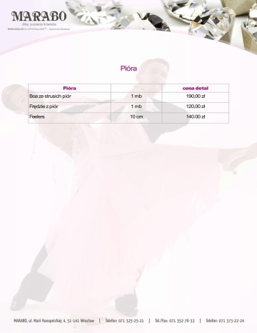 kkkt6tt kkK Pióra Pióra cena detal Boa ze strusich piór 1 mb 190,00 zł Frędzle z piór 1 mb 120,00 zł Feelers 10 cm 140.00 zł