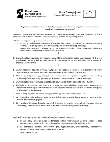 Regulamin zwrotu kosztów dojazdu