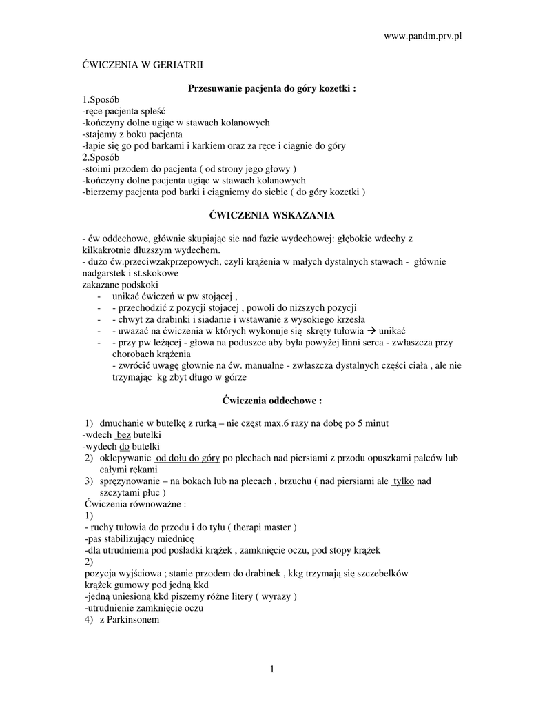 www.pandm.prv.pl 1 ĆWICZENIA W GERIATRII Przesuwanie