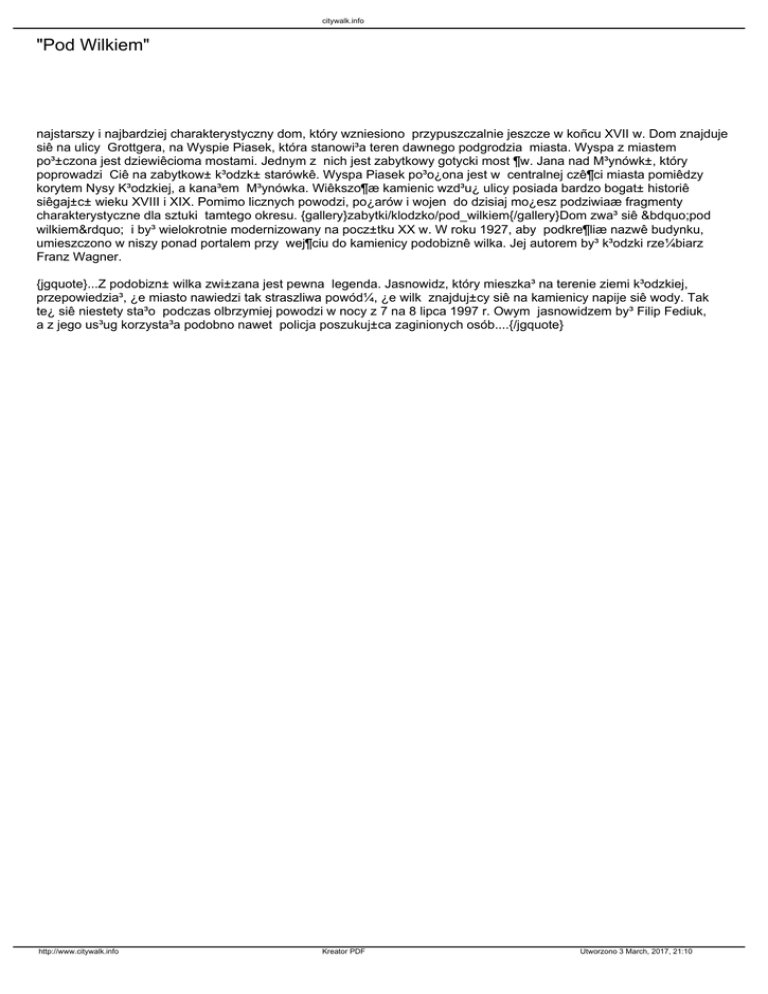 charakterystyczne dla sztuki tamtego okresu. {gallery}zabytki/klodzko/pod_wilkiem{/gallery}Dom zwa³ siê „pod