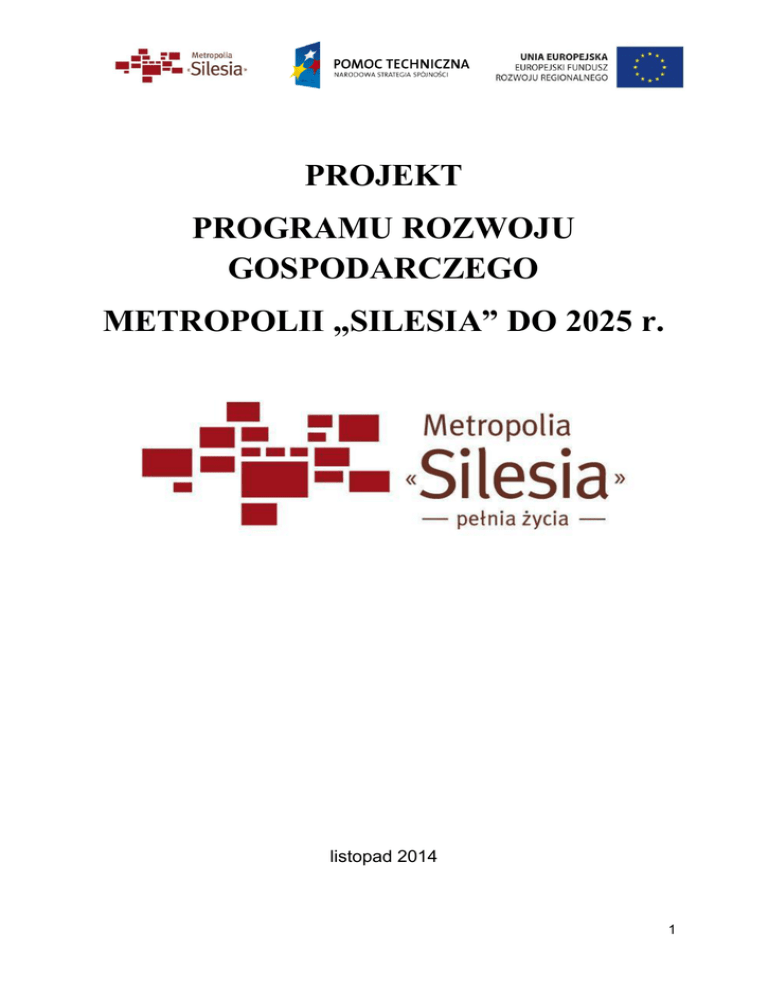 PROJEKT PROGRAMU ROZWOJU GOSPODARCZEGO METROPOLII „SILESIA” DO 2025 r. listopad 2014 1 Projekt opracowany na zlecenie Górnośląskiego Związku Metropolitalnego przez firmę Eu-Consult reprezentowaną przez: prof. dr hab. Andrzeja Kaletę, dr Elżbietę Zuzańską-Żyśko, dr Marcina Haberlę, dr Przemysława Wołczka, mgr Artura Kotlińskiego, mgr Macieja Kaletę. 2 Spis treści Metropolia „Silesia” – wstęp.................................................................................................................................. 5 1. Identyfikacja wyzwań rozwojowych Metropolii „Silesia” – wnioski z warsztatów ....................................... 10 1.1. Czym jest Metropolia „Silesia”, a czym będzie?.................................................................................... 11 1.2. Problemy pilne i ważne do rozwiązania................................................................................................. 13 2. Wnioski z I etapu projektu............................................................................................................................... 15 2.1. Liczebność populacji ............................................................................................................................... 15 2.2. Struktura demograficzna ludności .......................................................................................................... 16 2.3 Wykształcenie mieszkańców ................................................................................................................... 17 2.4 Konkurencyjność gospodarki i potencjał dochodowy ludności w Metropolii „Silesia” ......................... 18 2.5. Konkurencyjność Metropolii „Silesia” ..................................................................................................... 24 3. Wnioski z analizy globalnych trendów gospodarczych w kontekście Metropolii „Silesia” ......................... 26 4. Pożądane kierunki rozwoju gospodarczego Metropolii „Silesia” w odniesieniu do celów „Strategii Rozwoju Górnośląsko-Zagłębiowskiej Metropolii „Silesia” do 2025 r.” ........................................................... 31 5. Funkcje metropolitalne na obszarze GZM (Metropolii „Silesia”).................................................................. 37 5.1. Pojęcie funkcji metropolitalnych i ich rodzaje ........................................................................................ 37 5.2. Rozwój funkcji metropolitalnych i poziom rozwoju bazy instytucjonalnej wyższego rzędu 14 miast GZM na podstawie wybranych cech (instytucji metropolitalnych) .............................................................. 41 5.3. Przestrzenne rozmieszczenie funkcji i ich hierarchia............................................................................ 50 5.4. Rynek pracy a usługi wyższego rzędu na podstawie pracujących w 14 miastach GZM .................. 56 5.5. Baza ekonomiczna GZM oraz nadwyżka znaczeniowa pracujących według sekcji PKD w 2010 r. i według miast.................................................................................................................................................... 60 5.6. Kierunek rozwoju metropolitalnego Metropolii „Silesia” ........................................................................ 63 5.7. Propozycja dyslokacji branż prorozwojowych – wyniki warsztatów .................................................... 69 6. Analiza potencjałów i barier dla rozwoju Metropolii „Silesia” ................................................................... 71 7. Analiza kierunków rozwojowych Metropolii „Silesia”................................................................................ 75 8. Wizja oraz priorytety rozwoju gospodarki Metropolii „Silesia”...................................................................... 76 8.1. Edukacja dla biznesu............................................................................................................................... 79 8.1.1. Ukierunkowanie placówek edukacyjnych pod branże .................................................................. 80 8.1.2. Program wdrażania absolwentów szkół wyższych w świat praktyki............................................ 83 8.1.3. Program praktycznej nauki zawodu realizowany przy szkołach zawodowych na poziomie średnim. ....................................................................................................................................................... 85 8.1.4. Doposażenie szkół w nowoczesny sprzęt i zasoby danych ......................................................... 86 8.1.5. Akademia Młodych Naukowców..................................................................................................... 88 3 8.2. Nowa przedsiębiorczość ......................................................................................................................... 90 8.2.1. Tworzenie Specjalnych Stref Ekonomicznych............................................................................... 91 8.2.2. Rozszerzenie zakresu działań GZM o pozyskiwanie inwestorów ............................................... 91 8.2.3. E-administracja i idea „One Stop” – właściwa i kompleksowa obsługa inwestorów................... 92 8.2.4. Stymulowanie rozwoju branży poprzez tworzenie tematycznych klastrów................................. 92 8.2.5. Tworzenie inkubatorów przedsiębiorczości ................................................................................... 93 8.2.6. Zacieśnianie współpracy z miastami partnerskimi ........................................................................ 93 8.2.8. Utworzenie metropolitalnego banku ............................................................................................... 95 8.3. Innowacyjność przedsiębiorstw .........................