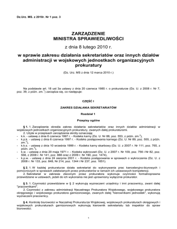 sekretariatu podlegają szefowi Oddziału Prezydialnego. W wojskowej prokuraturze okręgowej i wojskowej