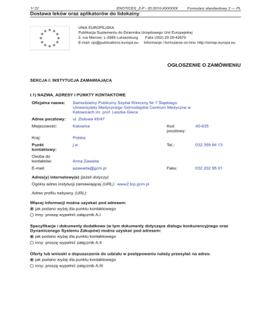 Dostawa leków oraz aplikatorów do lidokainy OGŁOSZENIE O