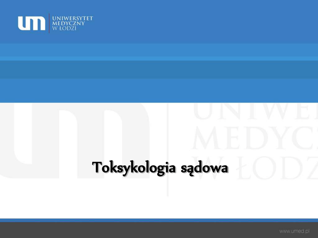 Toksykologia sądowa Podstawy toksykologiczne 1. Definicja toksykologii 2. Pojęcie trucizny, rodzaje dawek 3. Czynniki wpływające na toksyczność a) dawka b) szybkość wchłaniania i eliminacji c) droga wprowadzenia ksenobiotyku d) rozpuszczalność w wodzie i lipidach e) szybkość wprowadzenia ksenobiotyku f) stężenie trucizny g) indywidualne cechy ustroju Podstawy toksykologiczne 4. Przemieszczenia ksenobiotyków w ustroju: a) b) c) d) wchłanianie rozmieszczanie przemiany biochemiczne wydalanie 5. Interakcje toksykologiczne toksykokinetyczna toksykodynamiczna Zabezpieczenie materiału do badań 1. 2. 3. 4. 5. 6. 7. 8. 9. Krew Mocz Nerki Wątroba Płuco Mózg Tkanka tłuszczowa Żołądek z treścią Włosy, paznokcie, kości Analiza chemiczno - toksykologiczna 1. a) b) c) 2. a) b) c) d) Wyosobnienie trucizny trucizny lotne trucizny organiczne trucizny metaliczne Identyfikacja metody przesiewowe metody chromatograficzne metody optyczne metody immunologiczne Klasyfikacja trucizn 1. 2. 3. 4. 5. 6. 7. Trucizny działające miejscowo Trucizny miąższowe Trucizny lotne Trucizny krwi Trucizny działające na drodze czynnościowej Trucizny protoplazmatyczne Trucizny wykazujące tzw. tropizm tkankowy Alkohol etylowy C6H12O6 — 2 C2H5OH + 2 CO2 Alkohol etylowy (C2H5OH), to bezbarwna ciecz o charakterystycznym zapachu i piekącym smaku, posiada działanie odurzające. Etanol wrze w temperaturze 78,3°C, temperatura topnienia wynosi – 114,2 °C a gęstość w temperaturze 20 oC 0,7890 g/cm3. Mimo obecności w cząsteczce etanolu grupy –OH (takiej jak w zasadach) jest on słabym kwasem. Łatwo spala się jasnoniebieskim płomieniem. Właściwości biologiczno – chemiczne etanolu: •Łatwo rozpuszcza się w wodzie •Słabo rozpuszcza się w tłuszczach •Szybko przenika przez błony biologiczne •Wchłania się w żołądku (ok. 25% dawki) i jelicie cienkim (ok. 75% dawki) •Rozmieszcza się w wodzie ustroju – dystrybucja jest proporcjonalna do uwodnienia tkanek ciała Fizjologiczne przemiany etanolu - krzywa alkoholowa 1. Faza wchłaniania 2. Faza wyrównywania stężeń 3. Faza eliminacji b) krzywa spłaszczona a) krzywa ostra c) krzywa kumulacyjna Czynniki wpływające na poziom stężenia alkoholu a) b) c) d) rodzaj alkoholu czas wpływ pokarmu i wypełnienia żołądka budowy ciała Działanie alkoholu na organizm • • • • • stężenie do 1 promila (faza dysforyczna) stężenie 1,0-2,0 promila (faza euforyczna) stężenie 2,0-3,0 promila (faza ekscytacyjna) stężenia 3,0-4,0 (faza narkotyczna) stężenia powyżej 4,0 promila (faza porażenna) Metody oznaczania etanolu 1. Metody pośrednie oznaczania alkoholu we krwi – badanie powietrza wydychanego a) analizatory podręczne b) analizatory stacjonarne 2. a) b) c) Metody bezpośrednie metoda Widmarka metoda enzymatyczna ADH chromatografia gazowa (GC) Analiza powietrza wydychanego na zawartość alkoholu Analizatory podręczne działające na zasadzie utleniania elektrochemicznego. Alkosensor IV Alcotest 7410 Analiza powietrza wydychanego na zawartość alkoholu Analizatory stacjonarne z detektorami typu spektrofotometru podczerwieni. Alcotest 7110 Alkometr A 2.0 Alcomat Protokół pobrania krwi Rachunek retrospektywny i zasady opiniowania w sprawach alkoholowych Obliczenia retrospektywne można prowadzić w przypadkach kiedy: •Stężenie alkoholu we krwi było wyższe niż 0,4 ‰. •Czas od zdarzenia do pobrania próby krwi nie był dłuższy niż 5 godzin. •W chwili zdarzenia badana osoba znajdowała się w fazie eliminacji alkoholu z ustroju. •Badana osoba nie spożywała alkoholu po zdarzeniu. Rachunek prospektywny Do obliczenia ilości alkoholu, która została zresorbowana, służy następujący wzór: A=cpr A - ilość alkoholu znajdująca się w danym momencie w organizmie w [g] c - znalezione stężenie alkoholu w [mg/g], co odpowiada stężeniu w [‰] p - ciężar ciała [kg] r - współczynnik rozmieszczenia tj. współczynnik podziału alkoholu pomiędzy tkankami a krwią. Wartość „r” zależy od zawartości wody oraz tkanki tłuszczowej w organizmie. Stosujemy mężczyźni – 0,7, kobiety – 0,6. Jest on niezależny od ilości spożytego alkoholu. Metody wyznaczania współczynnika „r” • Metoda Seidla: rk=0,31223 – 0,006446p + 0,004466h rm= 0,31608 – 0,004821p + 0,004632h h – wzrost (cm) p – waga (kg) • Metoda Watsona: rk=0,29218 + 12,666h/w – 2,4846/w rm=0,39834 + 12,725h/w – 0,11275g/w + 2,8993/w h – wzrost (m) g – wiek (lata) w – waga (kg) • Metoda Forresta Metoda Forresta (kobiety) p [kg] 45 50 55 60 65 70 75 80 85 90 95 100 105 110 115 0,69 0,66 0,63 0,61 0,58 0,70 0,68 0,65 0,63 0,60 0,57 0,72 0,69 0,67 0,65 0,62 0,60 0,57 0,73 0,71 0,69 0,66 0,64 0,62 0,59 0,57 0,74 0,72 0,70 0,68 0,66 0,64 0,61 0,59 0,57 0,73 0,71 0,69 0,67 0,65 0,63 0,61 0,59 0,57 0,74 0,73 0,71 0,69 0,67 0,65 0,63 0,61 0,59 0,57 0,74 0,72 0,70 0,68 0,66 0,64 0,63 0,61 0,59 0,57 0,75 0,73 0,71 0,70 0,68 0,66 0,64 0,63 0,61 0,59 0,57 0,74 0,72 0,71 0,69 0,68 0,66 0,64 0,63 0,61 0,59 0,57 0,75 0,73 0,72 0,70 0,69 0,67 0,66 0,64 0,63 0,61 0,60 0,58 200 0,74 0,73 0,71 0,70 0,69 0,67 0,66 0,64 0,63 0,61 0,60 205 150 155 160 165 170 175 180 185 190 195 h [cm] Metoda Forresta (mężczyźni) p [kg] 45 50 55 60 65 70 75 80 85 90 95 100 105 110 115 0,78 0,75 0,72 0,69 0,68 0,79 0,77 0,74 0,71 0,69 0,66 0,80 0,78 0,76 0,73 0,71 0,69 0,66 0,82 0,80 0,77 0,75 0,73 0,71 0,68 0,66 0,83 0,81 0,79 0,77 0,75 0,72 0,70 0,68 0,66 0,82 0,80 0,78 0,76 0,74 0,72 0,70 0,68 0,66 0,83 0,81 0,79 0,77 0,76 0,74 0,72 0,70 0,68 0,66 0,82 0,81 0,79 0,77 0,75 0,73 0,72 0,70 0,68 0,67 0,83 0,82 0,80 0,78 0,77 0,75 0,73 0,72 0,70 0,68 0,67 0,83 0,81 0,79 0,78 0,76 0,75 0,73 0,71 0,70 0,68 0,67 0,84 0,82 0,81 0,79 0,78 0,76 0,74 0,73 0,71 0,70 0,68 0,67 200 0,83 0,82 0,80 0,79 0,77 0,76 0,74 0,73 0,71 0,70 0,69 205 150 155 160 165 170 175 180 185 190 195 h [cm] Ustawa z dnia 26.10.1982 r. – O wychowaniu w trzeźwo