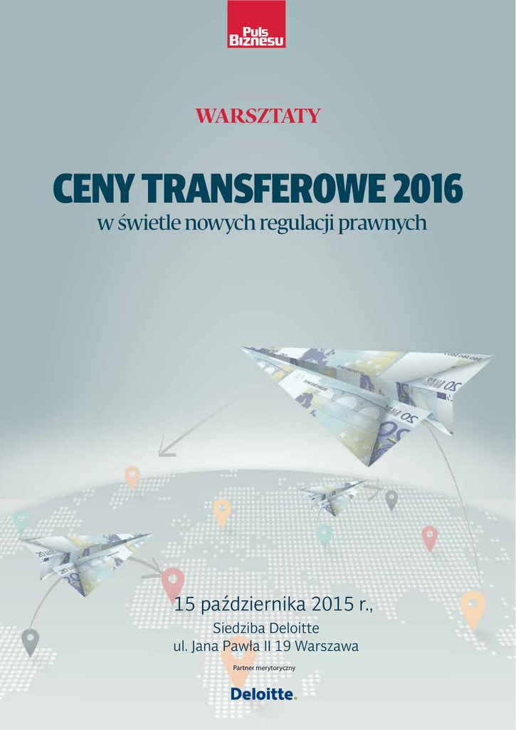 WARSZTATY CENY TRANSFEROWE 2016 w świetle nowych regulacji prawnych 15 października 2015 r., Siedziba Deloitte ul. Jana Pawła II 19 Warszawa Partner merytoryczny Przygotuj swoją firmę i grupę na zmiany! Dajemy Państwu kompendium wiedzy na temat konsekwencji wprowadzenia rekomendacji BEPS i zmian w podatku dochodowym Puls Biznesu i Deloitte Polska mają przyjemność zaprosić Państwa na niezwykłe warsztaty. W pierwszej dekadzie października poznamy już finalne raporty BEPS (Base Erosion and Profit Shifting). Ich celem jest uszczelnienie systemu podatkowego, zapobieżenie erozji opodatkowania oraz transferu zysków. To flagowy projekt OECD. Równolegle, by dostosować polskie prawo do wymogów międzynarodowych, u nas prowadzone są prace nad projektem zmian do ustawy o podatku dochodowym od osób fizycznych oraz do ustawy o podatku dochodowym od osób prawnych. Zakłada on m.in.: • • • trzystopniową dokumentację transakcji z podmiotami powiązanymi tj. dokumentacje na poziomie lokalnym (tzw. „Local File”), dokumentację grupową (tzw. „Master File) oraz raportowanie wg. krajów (tzw. „Country-By-Country Reporting”). konieczność sporządzania dokumentacji podatkowej nie tylko dla transakcji z podmiotami powiązanymi, ale umów zarządzania płynnością, umów o podziale kosztów, umów spółki niebędącej osobą prawną, umów wspólnego przedsięwzięcia lub umów o podobnym charakterze, obowiązek prowadzenia konkretnej dokumentacji w zależności od wielkości spółki. Nowela ma wejść na początku przyszłego roku. Proponowane zmiany uwzględniają plan działań przewidziany w Raporcie OECD nt. przeciwdziałania BEPS. Dlatego podczas warsztatów powiemy o ich konsekwencjach dla przedsiębiorstw, podobnie jak o: • • • • • wpływie BEPS na rozwój kontroli cen transferowych, oczekiwanych zmianach w działaniu polskich organów, kompetencjach urzędów skarbowych, najczęściej kontrolowanych transakcjach i grupach podmiotów, odpowiedzialności karno-skarbowej, metodach obrony. Powyższe zagadnienia przedstawią Państwu najlepsi z najlepszych - Iwona Georgijew, partner, wiceprezes zarządu Deloitte Doradztwo Podatkowe Sp. z o.o., oraz partnerzy i managerowie z Zespołu Cen transferowych Deloitte. Iwona Georgijew, jest reprezentantem firmy doradczej Deloitte we Wspólnym Forum Cen Transferowych Unii Europejskiej (EU JTPF) - grupy eksperckiej doradzającej Komisji Europejskiej w zakresie stosowania cen transferowych w Unii Europejskiej. W prowadzeniu warsztatów wspierać Panią Prezes będzie jej zespół, który w tym roku otrzymał prestiżową nagrodę Międzynarodowego Przeglądu Podatkowego (International Tax Review) za doradztwo w obszarze cen transferowych – Transfer Pricing Firm of the Year 2014 w Polsce i Europie Środkowej. Dlatego tych warsztatów nie może pominąć żadna firma działająca w międzynarodowej grupie. W szczególności zapraszamy: • Prezesów i Członków Zarządu ds. Finansowych • Dyrektorów Finansowych • Dyrektorów Ekonomicznych i Działu Treasury • Dyrektorów Rachunkowości i Podatków • Dyrektorów ds. Controlingu • Głównych Księgowych • Kontrolerów Finansowych • Managerów ds. Finansów, Podatków, Controlingu W razie pytań proszę o kontakt: Beata Tomaszkiewicz Project Manager – dziennikarz T +48 22 333 9751 F +48 22 333 9998 [email protected] Organizator Partner merytoryczny Patron Patroni medialni PROGRAM 08:30 Rejestracja uczestników, poranna kawa 09:00 Powitanie gości, wprowadzenie do warsztatów Iwona Georgijew, partner, wiceprezes Zarządu Deloitte Doradztwo Podatkowe zespół ds. Cen Transferowych, liderka Klubu SheXO, Rafał Sadowski, partner w zespole Cen Transferowych Deloitte Doradztwo Podatkowe 09:05 Zmiana otoczenia międzynardowego: Iwona Georgijew, partner, wiceprezes zarządu Deloitte Doradztwo Podatkowe zespół ds. Cen Transferowych, liderka Klubu SheXO →→ inicjatywa Base Erosion and Profit Shifting (BEPS) →→ prace Joint Transfer Pricing Forum i ich wpływ na regulacje i praktykę krajową w zakresie cen transferowych. 10:00 Dokumentacja cen transferowych w świetle standardów międzynarodowych (OECD): Mikołaj Michalski, senior manager w zespole Cen Transferowy w Deloitte Mikołaj Michalski, senior manager w zespole Cen Transferowy w Deloitte →→ masterfile, →→ local file, →→ country by country reporting. Z czego wynika zróżnicowanie rodzajów dokumentacji i kto jest odpowiedzialny za ich przygotowanie? 11:00 Przerwa na kawę 11:30 Wpływ prac BEPS na rozwój kontroli cen transferowych – najistotniejsze tematy techniczne: Tomasz Adamski, senior manager Deloitte, Rafał Sadowski, partner w zespole Cen Transferowych Deloitte Doradztwo Podatkowe →→ własność intelektualna: przypisanie do stron transakcji oraz podział korzyści, →→ pogłębiona analiza ryzyka gospodarczego i zwrotu należnego z tytułu jego ponoszenia, →→ istotnie zwiększony nacisk na kwestię substancji – rzeczywistego udziału stron w transakcji. 12:30 Oczekiwane zmiany w działaniu polskich organów: Tomasz Imiołczyk, manager Deloitte, Igor Fudali, manager Deloitte →→ koordynacja prac organów przez centralny zespół, →→ zapewnienie dostępu do baz danych, →→ typowanie podmiotów do kontroli na podstawie usystematyzowanej analizy ryzyka. 13:15 Fiskus kontra firma: Igor Fudali, manager Deloitte, Marek Gizicki, manager Deloitte →→ kompetencje urzędów skarbowych, najczęściej kontrolowane transakcje/grupy podmiotów →→ odpowiedzialność karno-skarbowa podmiotów oraz osób odpowiedzialnych za rozliczenia podatkowe w grupach →→ metody obrony 14:00 Proponowane zmiany w polskich przepisach: Iwona Georgijew, partner, wiceprezes zarządu Deloitte Doradztwo Podatkowe, zespół ds. Cen Transferowych, liderka Klubu SheXO, Rafał Sadowski, partner w zespole Cen Transferowych Deloitte Doradztwo Podatkowe →→ zakres zdarzeń gospoda