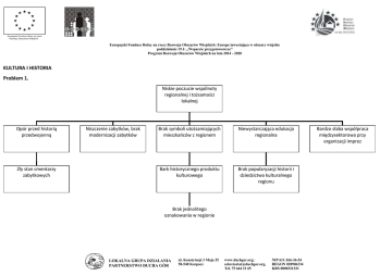Europejski Fundusz Rolny na rzecz Rozwoju Obszarów Wiejskich Europejski Fundusz Rolny na rzecz Rozwoju Obszarów Wiejskich: Europa inwestująca w obszary wiejskie poddziałanie 19.1: „Wsparcie przygotowawcze” Program Rozwoju Obszarów Wiejskich na lata 2014 - 2020 KULTURA I HISTORIA Problem 1. Niskie poczucie wspólnoty regionalnej i tożsamości lokalnej Opór przed historią przedwojenną Zły stan cmentarzy zabytkowych Niszczenie zabytków, brak modernizacji zabytków Brak symboli utożsamiających mieszkańców z regionem Niewystarczająca edukacja regionalna Bark historycznego produktu kulturowego Brak popularyzacji historii i dziedzictwa kulturalnego regionu Brak jednolitego oznakowania w regionie LOKALNA GRUPA DZIAŁANIA PARTNERSTWO DUCHA GÓR ul. Konstytucji 3 Maja 25 58-540 Karpacz www.duchgor.org; [email protected], Tel. 75 644 21 65 NIP 611-266-36-54 REGON 020906334 KRS 0000321321 Bardzo słaba współpraca międzysektorowa przy organizacji imprez Europejski Fundusz Rolny na rzecz Rozwoju Obszarów Wiejskich Europejski Fundusz Rolny na rzecz Rozwoju Obszarów Wiejskich: Europa inwestująca w obszary wiejskie poddziałanie 19.1: „Wsparcie przygotowawcze” Program Rozwoju Obszarów Wiejskich na lata 2014 - 2020 Problem 2. Niski poziom zainteresowania dot. wartości kulturowych i historycznych. Słabe zainteresowanie wydarzeniami promującymi te wartości Niewystarczająca edukacja regionalna Brak zwyczaju i kultury wspólnego, integracyjnego spędzania czasu (imprezy kulturalne, integracyjne) Za mało miejsc do plenerowych imprez i wydarzeń Skomplikowane procedury pozyskiwania środków zewnętrznych (UE) Brak popularyzacji historii i dziedzictwa kulturalnego regionu Bardzo niski poziom zaufania społecznego do lokalnych inicjatyw kulturalnych Niedostateczna ilość i zły stan infrastruktury kulturalnej: świetlice, kluby wiejskie, domy kultury REFUNDACJE Ograniczony dostęp do kultury (teatr, kino, imprezy, wydarzenia)w mniejszych ośrodkach LOKALNA GRUPA DZIAŁANIA PARTNERSTWO DUCHA GÓR ul. Konstytucji 3 Maja 25 58-540 Karpacz www.duchgor.org; [email protected], Tel. 75 644 21 65 NIP 611-266-36-54 REGON 020906334 KRS 0000321321