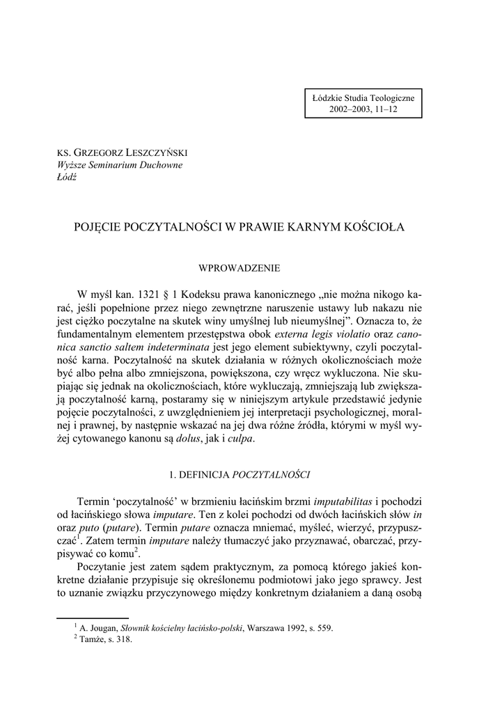 POJĘCIE POCZYTALNOŚCI W PRAWIE KARNYM KOŚCIOŁA