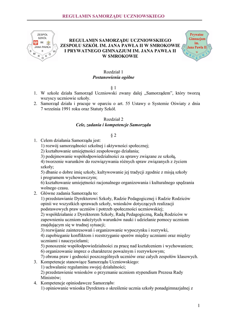 regulamin su - Zespół Szkół im Jana Pawła II w Smrokowie