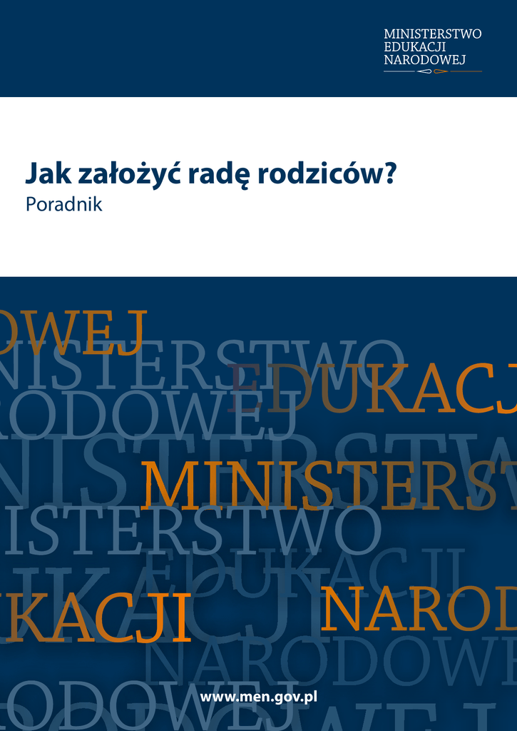 Jak założyć radę rodziców? Poradnik www.men.gov.pl Czym jest rada rodziców? Rada rodziców jest, nieposiadającym osobowości prawnej, ?? ? ? ? organem szkoły niezależnym od dyrektora szkoły i rady pedagogicznej. Reprezentuje on ogół rodziców uczniów danej szkoły. Jak tworzy się radę rodziców? Radę rodziców tworzy się na pierwszym zebraniu rodziców w każdym roku szkolnym. W wyborach do rady jednego ucznia reprezentuje jeden rodzic. W skład rad rodziców wchodzą: 1) w szkołach - po jednym przedstawicielu rad oddziałowych (potocznie zwanych trójkami klasowymi), wybranych w tajnych wyborach przez zebranie rodziców uczniów danego oddziału; 2) w placówkach - co najmniej 7 przedstawicieli, wybranych w tajnych wyborach przez zebranie rodziców wychowanków danej placówki; 3) w szkołach artystycznych - co najmniej 7 przedstawicieli, wybranych w tajnych wyborach przez zebranie rodziców uczniów danej szkoły. Jakie są kompetencje rady rodziców? Szczegółowe kompetencje rady rodziców zawiera statut szkoły lub placówki. Określa on również zasady współdziałania rady rodziców z innymi organami szkoły oraz sposób rozwiązywania sporów między nimi. Rada rodziców może występować do dyrektora i innych organów szkoły, organu prowadzącego szkołę oraz organu sprawującego nadzór pedagogiczny z wnioskami i opiniami we wszystkich sprawach szkoły. Rady rodziców mogą porozumiewać się ze sobą, ustalając zasady i zakres współpracy. 1 Do kompetencji rady rodziców określonych prawem należy : 1. uchwalanie w porozumieniu z radą pedagogiczną: a) programu wychowawczego szkoły obejmującego wszystkie treści i działania o charakterze wychowawczym skierowane do uczniów, b) realizowanego przez nauczycieli, programu profilaktyki dostosowanego do potrzeb rozwojowych uczniów oraz potrzeb danego środowiska, obejmującego wszystkie treści i działania o charakterze profilaktycznym skierowane do uczniów, nauczycieli i rodziców; 2. opiniowanie: a) programu i harmonogramu poprawy efektywności kształcenia lub wychowania szkoły lub placówki, b) projektu planu finansowego składanego przez dyrektora szkoły, c) projektu dodatkowych dni wolnych od zajęć dydaktyczno – wychowawczych, d) podjęcia i prowadzenia w szkole działalności przez stowarzyszenia i inne organizacje, e) oceny dorobku zawodowego nauczyciela stażysty, kontraktowego i mianowanego za okres stażu; 3. wnioskowanie do organu prowadzącego, wspólnie z radą pedagogiczną i samorządem uczniowskim, o nadanie imienia szkole; 4. wnioskowanie i opiniowanie w kwestiach związanych z obowiązkiem noszenia przez uczniów jednolitego stroju (tzw. mundurków) na terenie szkoły; 5. wnioskowanie o ocenę pracy nauczyciela. W celu wspierania działalności statutowej szkoły, rada rodziców może gromadzić fundusze z dobrowolnych składek rodziców oraz innych źródeł. 2 Co powinien zawierać regulamin rady rodziców? Obowiązkiem ustawowym rady rodziców jest uchwalenie regulaminu swojej działalności. Regulamin ten powinien w szczególności określać: 1) wewnętrzną strukturę i tryb pracy rady (zwykle rada rodziców tworzy swoje prezydium, w którym zasiada przewodniczący, jego zastępca sekretarz oraz skarbnik, jeśli rada posiada fundusze); 2) szczegółowy tryb przeprowadzania wyborów do rad oddziałowych oraz do rady rodziców; 3) zasady wydatkowania funduszy rady rodziców, jeśli rada zdecydowała o gromadzeniu funduszy z dobrowolnych składek rodziców lub innych źródeł. Regulamin może również zawierać zapisy dotyczące np. współdziałania z innymi radami rodziców, sposobu podejmowania uchwał oraz dokumentowania działalności rady, praw i obowiązków członków rady. Jak dyrektor szkoły może wspierać radę rodziców? Dyrektor szkoły jest bardzo ważnym organem wspierającym radę rodziców. To on powinien zadbać o to, aby przed wyborem swoich przedstawicieli rodzice byli świadomi, jakie kompetencje posiada rada rodziców i jakie obowiązki są związane z zasiadaniem w niej. Dyrektor z dużym wyprzedzeniem powinien informować jakie są jego oczekiwania w stosunku do rady pamiętając jednocześnie, że na spotkaniach rady rodziców to jej członkowie są gospodarzami, a dyrektor szkoły lub nauczyciele jedynie mile widzianymi gośćmi. 3
