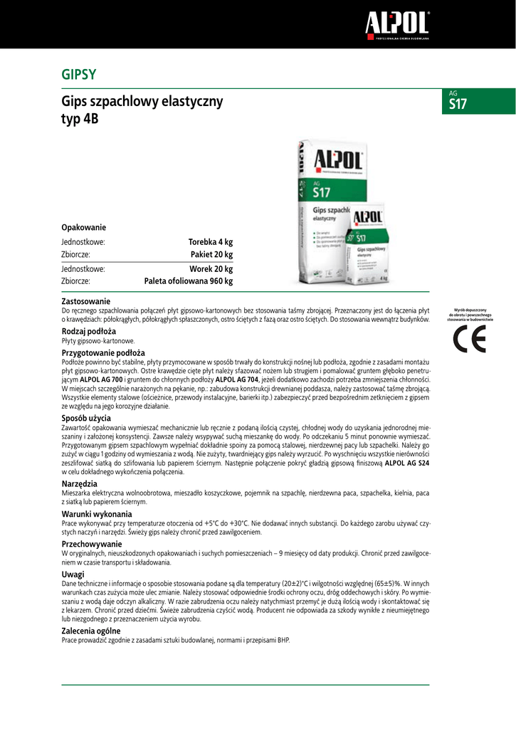 S17 Gips szpachlowy elastyczny typ 4B GIPSY