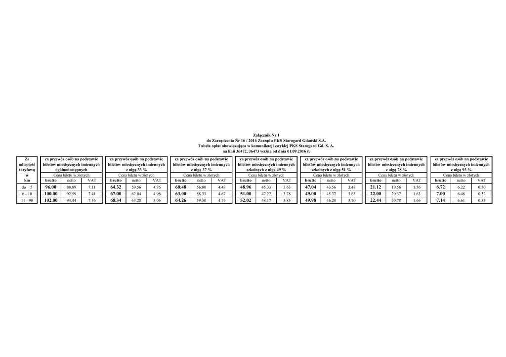 Załącznik Nr 1 do Zarządzenia Nr 16 / 2016 Zarządu PKS Starogard