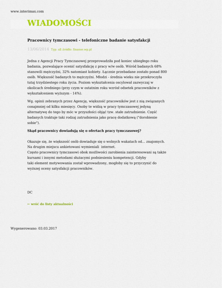 Pracownicy tymczasowi - telefoniczne badanie satysfakcji