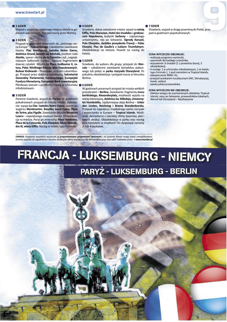 ǁǁǁ͘ƚƌĂǀĞůĂƌƚ͘Ɖů ϭ/F tLJũĂnjĚnjǁĐnjĞƑŶŝĞũƵƐƚĂůŽŶĞŐŽŵŝĞũƐĐĂnjďŝſƌŬŝǁŐŽͲ ĚnjŝŶĂĐŚǁŝĞĐnjŽƌŶLJĐŚ͘WƌnjĞũĂnjĚŶŽĐŶLJƉƌnjĞnjEŝĞŵĐLJ͘ Ϯ/F WƌnjLJũĂnjĚǁŐŽĚnjŝŶĂĐŚƉŽƌĂŶŶLJĐŚĚŽͣnjŝĞůŽŶĞŐŽƐĞƌͲ ĐĂƵƌŽƉLJ͟ʹ>ƵŬƐĞŵďƵƌŐĂ͘ĂųŽĚnjŝĞŶŶĞnjǁŝĞĚnjĂŶŝĞ ŵŝĂƐƚĂ͗ WůĂĐ <ŽŶƐƚLJƚƵĐũŝ͕ ŬĂƚĞĚƌĂ EŽƚƌĞ ĂŵĞ͕ ĚnjŝĞůŶŝĐĂ'ƌƵŶĚ͕ŬŽƑĐŝſųƑǁ͘DŝĐŚĂųĂ͕ƉƌnjĞųŽŵƌnjĞŬŝ ůnjĞƩĞ͕ƐƉĂĐĞƌƵůŝĐnjŬČĚĞůĂŽƌŶŝĐŚĞĐnjLJůŝͣŶĂũƉŝħŬͲ ŶŝĞũƐnjLJŵ ďĂůŬŽŶĞŵ ƵƌŽƉLJ͕͟ ďħĚČĐĞũ ĨƌĂŐŵĞŶƚĞŵ ĚĂǁŶĞũĐLJƚĂĚĞůŝ͘tŝnjLJƚĂŶĂ WůĂĐƵ'ƵŝůůĂƵŵĞ//͕ƌĂͲ ƚƵƐnj͕WĂųĂĐtŝĞůŬŝĞŐŽ<ƐŝħĐŝĂ͕/njďĂĞƉƵƚŽǁĂŶLJĐŚ͘ ƵůǁĂƌ<ƌſůĞǁƐŬŝʹĮŶĂŶƐŽǁĞĐĞŶƚƌƵŵ>ƵŬƐĞŵďƵƌͲ ŐĂ͘WƌnjĞũĂnjĚƉƌnjĞnjĚnjŝĞůŶŝĐħĞƵƌŽƉĞũƐŬČ͗^ĞŬƌĞƚĂƌŝĂƚ 'ĞŶĞƌĂůŶLJ WĂƌůĂŵĞŶƚƵ ƵƌŽƉĞũƐŬŝĞŐŽ͕ ƵƌŽƉĞũƐŬŝ &ƵŶĚƵƐnjDŽŶĞƚĂƌŶLJ͕ƵƌŽƉĞũƐŬŝĂŶŬ/ŶǁĞƐƚLJĐLJũŶLJ͘ WŝŬŶŝŬŽǁLJǁŝĞĐnjſƌnjƉŽƐŝųŬŝĞŵ͕ŶŽĐůĞŐǁƐĐŚƌŽŶŝƐŬƵ ŵųŽĚnjŝĞǏŽǁLJŵ͘ ϯ/F WŽƌĂŶŶĞƑŶŝĂĚĂŶŝĞ͕ǁLJũĂnjĚĚŽWĂƌLJǏĂ͘tŐŽĚnjŝŶĂĐŚ ƉŽųƵĚŶŝŽǁLJĐŚƉƌnjLJũĂnjĚĚŽŵŝĂƐƚĂŵŝųŽƑĐŝ͘ǁŝĞĚnjĂͲ ŶŝĞ͗ǁLJƐƉĂ>ĂŝƚĞŝŬĂƚĞĚƌĂEŽƚƌĞĂŵĞ͕ƐƉĂĐĞƌƉŽ ǁnjŐſƌnjƵDŽŶƚŵĂƌƚƌĞ͗ĂnjLJůŝŬĂ^ĂĐƌĞŽĞƵƌ͕WůĂĐĞ ĚĞdĞƌƚƌĞ͕ƉůĂĐWŝŐĂůůĞ͘ǁŝĞĚnjĂŶŝĞnjďŝŽƌſǁDƵnjĞƵŵ >ƵǁƌƵʹŶĂũǁŝħŬƐnjĞŐŽŵƵnjĞƵŵƑǁŝĂƚĂ͘KďŝĂĚŽŬŽůĂͲ ĐũĂŶĂŵŝĞƑĐŝĞ͘WĂƌLJǏƉŽnjŵŝĞƌnjĐŚƵ͗WůĂĐĞsĞŶĚŽŵĞ͕ WůĂĐĞĚĞůĂŽŶĐŽƌĚĞ͕WŽůĂůŝnjĞũƐŬŝĞ͕DŽƐƚůĞŬƐĂŶͲ ĚƌĂ///͕ǁŝĞǏĂŝŋ Ă͘EŽĐůĞŐǁŚŽƚĞůƵƚLJƉƵ&ŽƌŵƵųĂ͘ ϰ/F _ŶŝĂĚĂŶŝĞ͕ĚĂůƐnjĞnjǁŝĞĚnjĂŶŝĞŵŝĂƐƚĂ͗ǁũĂnjĚŶĂǁŝĞǏħ ŝŋ Ă͕WŽůĂDĂƌƐŽǁĞ͕,ŽƚĞůĚĞƐ/ŶǀĂůŝĚĞƐnjŐƌŽďŽǁͲ ĐĞŵ EĂƉŽůĞŽŶĂ͕ ďƵĚLJŶŬŝ ^ŽƌďŽŶLJ ʹ ŶĂũƐƚĂƌƐnjĞŐŽ ƵŶŝǁĞƌƐLJƚĞƚƵ͕ ƌĞũƐ ƉŽ ^ĞŬǁĂŶŝĞ͕ KŐƌŽĚLJ <ĂƌƵnjĞů͕ WŽůĂůŝnjĞũƐŬŝĞ͕ƐŝĞĚnjŝďĂƉƌĞnjLJĚĞŶƚĂ&ƌĂŶĐũŝʹWĂųĂĐ ůŝnjĞũƐŬŝ͕ WůĂĐ ĚĞ 'ĂƵůůĞ͛Ă nj BƵŬŝĞŵ dƌŝƵŵĨĂůŶLJŵ͘ KďŝĂĚŽŬŽůĂĐũĂ ŶĂ ŵŝĞƑĐŝĞ͘ WŽǁƌſƚ ŶĂ ŶŽĐůĞŐ ĚŽ ŚŽƚĞůƵ͘ ϱ/F _ŶŝĂĚĂŶŝĞ͕ĚŽǁLJďŽƌƵĚůĂŐƌƵƉLJ͗ƉƌnjĞũĂnjĚĚŽtĞƌͲ ƐĂůƵ ʹ ĐĂųŽĚnjŝĞŶŶĞ njǁŝĞĚnjĂŶŝĞ ŬŽŵƉůĞŬƐƵ ƉĂųĂĐŽͲ ǁĞŐŽ ůƵď ƉŽďLJƚ ǁ ƉĂƌŬƵ ƌŽnjƌLJǁŬŝ ŝƐŶĞLJůĂŶĚ͘ WŽ ƉŽųƵĚŶŝƵŽďŝĂĚŽŬŽůĂĐũĂŝƉƌnjĞũĂnjĚŶŽĐŶLJǁŬŝĞƌƵŶŬƵ ĞƌůŝŶĂ͘ ϲ/F tŐŽĚnjŝŶĂĐŚƉŽƌĂŶŶLJĐŚƉƌnjLJũĂnjĚĚŽŵŝĂƐƚĂǁŝĞůŬŝĐŚ ƉƌnjĞŽďƌĂǏĞŷʹĞƌůŝŶĂ͘ǁŝĞĚnjĂŶŝĞ͗ĨƌĂŐŵĞŶƚLJŵƵƌƵ ďĞƌůŝŷƐŬŝĞŐŽ͕ůĞdžĂŶĚĞƌƉůĂƚnj͕ŵŽǏůŝǁŽƑđǁũĂnjĚƵŶĂ ǁŝĞǏħƚĞůĞǁŝnjLJũŶČ͕ĚnjŝĞůŶŝĐĂƑǁ͘DŝŬŽųĂũĂ͕hŶŝǁĞƌƐLJͲ ƚĞƚ,ƵŵďŽůĚƚĂ͕ŶĂũƐųLJŶŶŝĞũƐnjĂĂůĞũĂĞƌůŝŶĂʹhŶƚĞƌ ĚĞŶ >ŝŶĚĞŶ͕ ZĞŝĐŚƐƚĂŐ ŝ ƌĂŵĂ ƌĂŶĚĞŶďƵƌƐŬĂ͘ WƌnjĞũĂnjĚĚŽŶĂũǁŝħŬƐnjLJƚƌŽƉŝŬĂůŶĞŐŽƉĂƌŬƵƌŽnjƌLJǁŬŝ ŝ ǁLJƉŽĐnjLJŶŬƵ ǁ ƵƌŽƉŝĞ ʹ dƌŽƉŝĐĂů /ƐůĂŶĚƐ͘ DŽǏůŝͲ ǁŽƑđƐŬŽƌnjLJƐƚĂŶŝĂnjƐnjĞƌŽŬŝĞũŽĨĞƌƚLJďĂƐĞŶſǁ͕ƉůĂǏŝ ŝŶŶLJĐŚĂƚƌĂŬĐũŝ͘KďŝĂĚŽŬŽůĂĐũĂǁƉĂƌŬƵŽƌĂnjŶŽĐůĞŐ ƉŽĚŶĂŵŝŽƚĞŵǁƚƌŽƉŝŬĂĐŚ͊ŽĚLJƐƉŽnjLJĐũŝŶĂŵŝŽƚLJ ϮͲůƵďϰͲŽƐŽďŽǁĞ͘ ϳ/F _ŶŝĂĚĂŶŝĞ͕ǁLJũĂnjĚǁĚƌŽŐħƉŽǁƌŽƚŶČĚŽWŽůƐŬŝ͕ƉƌnjLJͲ ũĂnjĚǁŐŽĚnjŝŶĂĐŚƉŽƉŽųƵĚŶŝŽǁĐLJŚ͘ Etz/</K:Dh:͗ ͲƌĞĂůŝnjĂĐũħƉƌŽŐƌĂŵƵǁLJĐŝĞĐnjŬŝ͕ ͲƵƉŽŵŝŶĞŬĚůĂŬĂǏĚĞŐŽƵĐnjĞƐƚŶŝŬĂ͕ ͲǁLJǏLJǁŝĞŶŝĞ͗ϲƑŶŝĂĚĂŷ;ϭnjƉƌŽǁŝĂŶƚƵďŝƵƌĂͿ͕ϱ ŽďŝĂĚŽŬŽůĂĐũŝ͕ ͲϰŶŽĐůĞŐŝ͗ϭǁƐĐŚƌŽŶŝƐŬƵŵųŽĚnjŝĞǏŽǁLJŵ͕ϮǁŚŽƚĞůƵ ƚLJƉƵ&ŽƌŵƵųĂϭ͕ϭƉŽĚŶĂŵŝŽƚĞŵǁdƌŽƉŝĐĂů/ƐůĂŶĚƐ͕ ͲƵďĞnjƉŝĞĐnjĞŶŝĞEEtŝ<>͕ ͲƉƌnjĞũĂnjĚĂƵƚŽŬĂƌĞŵƚƵƌLJƐƚLJĐnjŶLJŵ;t͕ŬůŝŵĂƚLJnjĂĐũĂ͕ ďĂƌĞŬ͕ǁŝĚĞŽͿ ͲŽƉŝĞŬĂƉŝůŽƚĂͲƉƌnjĞǁŽĚŶŝŬĂ͘ Etz/</E/K:Dh:͗ ďŝůĞƚſǁǁƐƚħƉƵĚŽǁLJŵŝĞŶŝŽŶLJĐŚŽďŝĞŬƚſǁ͕dƌŽƉŝĐĂů /ƐůĂŶĚƐ͕ƌĞũƐƵƉŽ^ĞŬǁĂŶŝĞ͕ƉƌnjĞǁŽĚŶŝŬſǁůŽŬĂůŶLJĐŚ͕ tĞƌƐĂůůƵďŝƐŶĞLJůĂŶĚʹĨĂŬƵůƚĂƚLJǁŶŝĞ ht'͗WƌŽŐƌĂŵLJǁƐnjLJƐƚŬŝĐŚǁLJĐŝĞĐnjĞŬƐČƉƌŽƉŽŶŽǁĂŶLJŵŝƉƌŽŐƌĂŵĂŵŝƌĂŵŽǁLJŵŝŝŶĂǏLJĐnjĞŶŝĞ<ůŝĞŶƚĂŵŽŐČnjŽƐƚĂđnjŵŽĚLJĮŬŽǁĂŶĞ͖ ƚĞƌŵŝŶLJǁLJũĂnjĚƵĚŽƵnjŐŽĚŶŝĞŶŝĂnjďŝƵƌĞŵ͖ĂƚƌĂŬĐLJũŶĞŽĨĞƌƚLJǁƐƉſųƉƌĂĐLJĚůĂŬŝĞƌŽǁŶŝŬſǁŐƌƵƉŽƌĂnjƐnjŬſųŝnjĂŬųĂĚſǁƉƌĂĐLJͻǁǁǁ͘ƚƌĂǀĞůĂƌƚ͘Ɖů