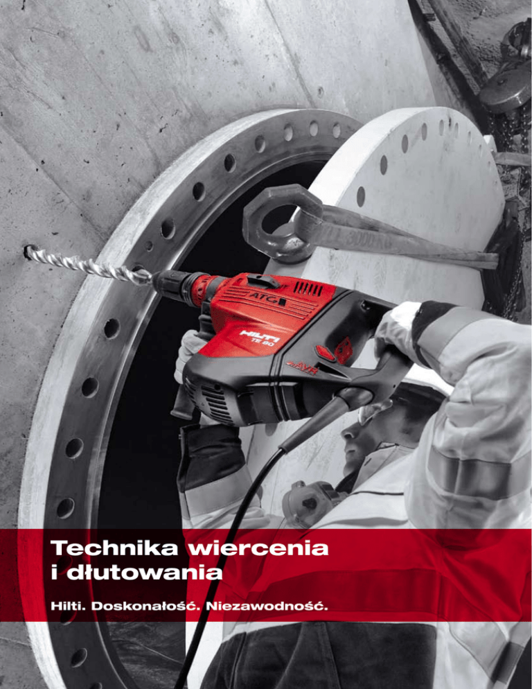 Technika wiercenia i dłutowania Hilti. Doskonałość. Niezawodność. Technika wiercenia i dłutowania Wiertarki udarowe NOWOŚĆ UD 16 Wkrętarko-wiertarka UD 30 Wkrętarko-wiertarka UH 700 Wiertarka udarowa Strona 68 Strona 69 Strona 70 Młotowiertarki / lekkie młoty kombi z uchwytem TE-C TE 2 Młotowiertarka TE 2-S Młotowiertarka TE 2-M Młotowiertarka TE 6-S Młotowiertarka TE 7-C Młotowiertarka TE DRS-M System odsysania zwiercin TE 16 Lekki młotek wiercący TE 16-C Lekki młotek kombi TE 16-M Lekki młotek kombi Akcesoria TE-C Wiertła TE-C Dłuta TE-T Wiertła TE-T Dłuta Strona 71 Strona 72 Strona 73 Strona 74 Strona 75 Strona 76 Strona 77 Strona 78 Strona 79 Strona 80 Strona 83 Strona 93 Strona 95 Strona 98 Młoty kombi TE 50 Młot kombi TE 60 Młot kombi TE 60-ATC Młot kombi TE 70 Młot kombi TE 70-ATC Młot kombi TE 80-ATC Młot kombi Akcesoria TE-Y Wiertła TE-Y Dłuta NOWOŚĆ NOWOŚĆ NOWOŚĆ Strona 99 Strona 100 Strona 101 Strona 102 Strona 103 Strona 104 Strona 105 Strona 106 Strona 112 Młoty dłutujące / wyburzeniowe TE 500 Lekki młot dłutujący TE 500-AVR Lekki młot dłutujący TE 706 Młot dłutujący TE 706-AVR Młot dłutujący TE 805 Młot wyburzeniowy TE 905-AVR Młot wyburzeniowy Akcesoria TE-S Dłuta TP 19 Dłuta TP 22 Dłuta Strona 114 Strona 115 Strona 116 Strona 117 Strona 118 Strona 119 Strona 120 Strona 121 Strona 123 Strona 124 TPS System antykradzieżowy TPS Elektroniczne zabezpieczenie przed kradzieżą Strona 125 Informacje techniczne zawarte w katalogu mają charakter jedynie informacyjny. Przy stosowaniu produktu należy postępować zgodnie z instrukcją załączoną do produktu oraz zgodnie z zapisami odpowiedniego dokumentu odniesienia (normy lub aprobaty technicznej). www.hilti.pl | 0-801 888 801 | 0-22 320 56 00 03 Technika wiercenia i dłutowania 61 Technika wiercenia i dłutowania Technika wiercenia i dłutowania Wyznaczamy nowe standardy Udar elektropneumatyczny Technika wiercenia i dłutowania W 1967 roku zrewolucjonizowaliśmy pracę młotowiertarkami i młotami wprowadzając udar elektropneumatyczny. Energia pojedynczego udaru jest wielokrotnie wyższa niż w przypadku udaru mechanicznego i tylko w niewielkim stopniu zależy od siły docisku operatora. Udar elektropneumatyczny zwiększa więc zdecydowanie skuteczność, wydajność i komfort pracy. Dbając o naszych Klientów, tworzymy innowacyjne produkty, które wyprzedzają potrzeby rynku i wyznaczają nowe standardy. AVR Active Vibration Reduction – komfort w czasie długiej pracy Wysoki poziom wibracji jest najczęstszą przyczyną dyskomfortu pracy i szybkiego zmęczenia, a co za tym idzie zmniejszenia wydajności. Pierwszy system AVR został opracowany z myślą o pracy ciężkimi młotami wyburzeniowymi. Drgania przenoszone na obudowę lub rękojeść redukowane są poprzez odizolowany mechanizm udarowy oparty o sprężynę, przez co następuje tłumienie wibracji w miejscu ich powstawania. W 2008 roku Hilti wprowadziło system AVR również do młotów kombi. Amortyzator À oraz rękojeść główna w pełni odseparowana od korpusu urządzenia Á pozwalają zredukować drgania nawet o 2/3. System AVR w nowym młocie kombi TE 80-ATC Młot kombi TE 80 ATC ATC Active Torque Control – większe bezpieczeństwo pracy Bez ATC Ryzyko nagłego zablokowania wiertła na zbrojeniu i nie kontrolowanego obrócenia maszyny wokół własnej osi, zmusza do kurczowego, męczącego trzymania młota, oraz powoduje stres z obawy przed groźnym wypadkiem czy po prostu zniszczeniem wiertła. Z ATC W przypadku zablokowania wiertła w otworze, system ATC błyskawicznie zatrzymuje maszynę co znacznie podnosi poziom bezpieczeństwa i komfort pracy oraz wpływa na żywotność stosowanego osprzętu. System ATC uzupełnia działanie mechanicznego sprzęgła przeciążeniowego. Sensory wychwytują moment zablokowania wiertła w otworze, w wyniku czego jednostka kontrolna natychmiast rozłącza wiertło z silnikiem i zatrzymuje silnik. 62 03 Technika wiercenia i dłutowania a c a – sensory b – jednostka kontrolna c – sprzęgło magnetyczne b Silnik bezszczotkowy (typu SR) Bezszczotkowy silnik nowej generacji – zastosowany w TE 706 / TE 706-AVR – to konstrukcja, w której wyeliminowano najsłabsze elementy tradycyjnego silnika elektrycznego tj. szczotki, komutator i uzwojenie wirnika. Brak konieczności wymiany szczotek wydłuża okres między przeglądami serwisowymi. www.hilti.pl | 0-801 888 801 | 0-22 320 56 00 Technika wiercenia i dłutowania Innowacyjne samoostrzące dłuta Hilti n Wyższego komfortu pracy – skuteczniejsze i bardziej precyzyjne wyburzanie. n Produktywności – nowy profil dłuta oraz specjalna technologia indukcyjnego utwardzania gwarantują niezmienną ostrość dłuta. n Wytrzymałości – najwyższej jakości materiały i najnowocześniejsza technologia produkcji minimalizuje możliwość uszkodzenia dłuta. Technika wiercenia i dłutowania Całkowicie nowatorskie dłuta z innowacyjną konstrukcją samoostrzącej części roboczej, wyznaczają nowe standardy w zakresie: n Wydajności – brak możliwości zakleszczania się dłuta oraz o 30% większa wydajność. n Redukcji kosztów – brak konieczności powtórnego ostrzenia, przekuwania lub ponownego utwardzania dłuta. TPS – elektroniczne zabezpieczenie przed kradzieżą Młot dłutujący TE 706-AVR Młotowiertarka TE 7-C Theft Protection System Elektroniczna blokada uruchomienia silnika zabezpieczająca urządzenie przed kradzieżą i ograniczająca dostęp do elektronarzędzia osobom nieupoważnionym do jego obsługi. Bezpyłowe wiercenie Maksymalna wydajność Urządzenia Hilti + osprzęt Hilti Młotowiertarka TE 2-M System odsysania zwiercin Hilti DRS (Dust Removal System) Innowacyjne rozwiązanie Hilti umożliwia niemal bezpyłową pracę wszędzie tam gdzie jest to potrzebne (praca we wnętrzach, wiercenie nad głową itp.). System TE DRS-M nie wymaga podłączania odkurzacza ani żadnych dodatkow