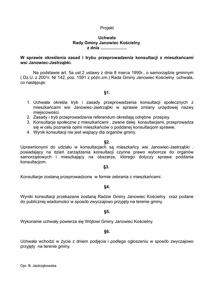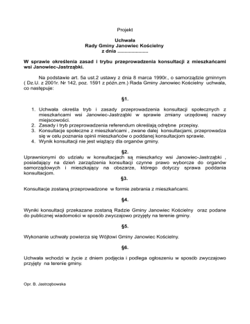 Projekt Uchwaˇa Rady Gm iny Janowiec Ko cielny z dnia