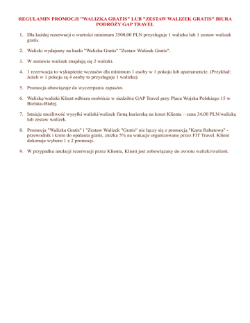 REGULAMIN PROMOCJI "WALIZKA GRATIS" LUB "ZESTAW
