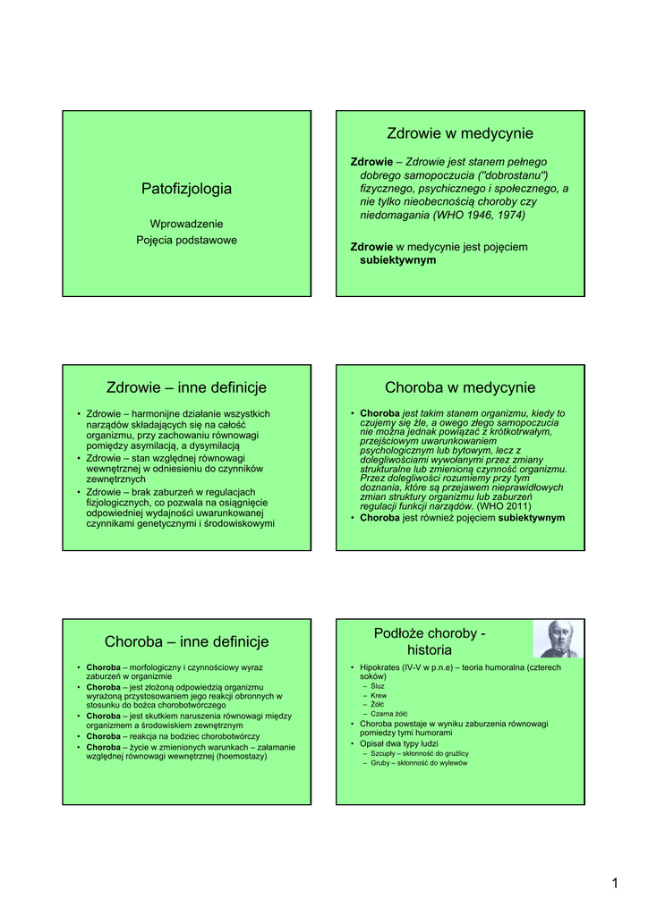 Patofizjologia Zdrowie w medycynie Zdrowie – inne definicje