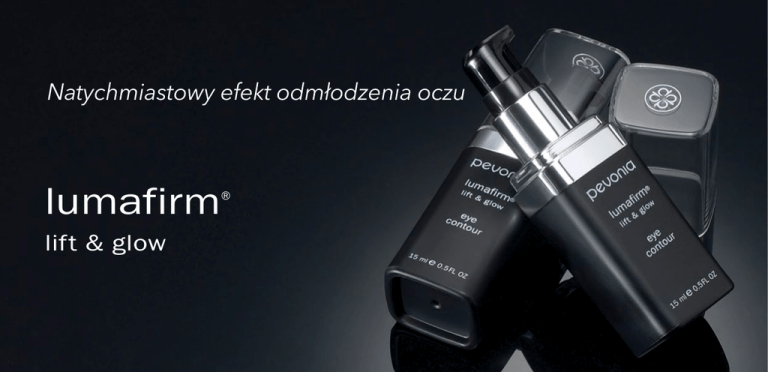 Natychmiastowy efekt odmłodzenia oczu lumafirm ® lift & glow Krem lumafirm® liftingująco-rozświetlający kontur oka... W widoczny sposób wygładza zmarszczki i poprawia strukturę skóry Zapewnia efekt wzmocnienia i ujędrnienia Zmniejsza cienie i redukuje obrzęki wokół oczu Rozjaśnia i rozświetla Regeneruje skórę zniszczoną przez słońce Modelka A przed zabiegiem Modelka A po jednym zabiegu Modelka A przed zabiegiem Modelka A po jednym zabiegu Modelka B przed zabiegiem Modelka B po jednym zabiegu jeden Modelka B przed zabiegiem Modelka B po jednym zabiegu ZABIEG... NATYCHMIASTOWE REZULTATY! 100% Satysfakcji *Tygodniowe badanie z udziałem 30 kobiet W ostatnim badaniu wśród konsumentek „100% uczestniczek stwierdziło, że są zadowolone z natychmiastowego efektu rozjaśnienia oraz czuły, że kontur ich oczu został wygładzony i wzmocniony.”* Zdjęcia Modelki A i B zostały wykonane po przeprowadzeniu jednego profesjonalnego zabiegu w Spa. Fotografie nie są w żaden sposób retuszowane. Wypróbuj i przekonaj się na własnej skórze! Zapytaj swojego terapeutę Spa o ekskluzywny zabieg lumafirm® liftingująco-rozświetlający na okolice oczu, który zawiera fantastyczny kompleks o działaniu wzmacniającym oraz substancje aktywne zwalczające oznaki starzenia. Krem lumafirm® liftingująco-rozświetlający kontur oka… Intensywna rewolucja w odmładzaniu skóry wokół oczu! Potężna formuła oraz technologia Biomimetic* Liposomic Technology działają głęboko i sprawiają, że Krem lumafirm® liftingująco-rozświetlający kontur oka to najwyższej jakości ochrona przeciw procesowi starzenia. Szybko i w widoczny sposób wygładza linie mimiczne i zmarszczki, redukuje cienie oraz usuwa obrzęki wokół oczu. Krok 1: Wykonaj demakijaż oczu za pomocą Płynu do demakijażu oczu Pevonia, a następnie bardzo dokładnie oczyść twarz za pomocą odpowiedniego toniku i mleczka Pevonia zgodnego z Twoim typem cery. Krok 2: Nałóż Krem lumafirm® liftingująco-rozświetlający kontur oka i przygotuj się na natychmiastowe efekty redukcji oznak przemijającego czasu! Krok 3: Pamiętaj o codziennej pielęgnacji skóry: nakładaj Krem lumafirm® liftingująco-rozświetlający lub inny krem Pevonia o działaniu rozświetlającym, aby zapewnić rozjaśnienie twarzy na stałe! *Zaawansowany system dostarczania gwarantujący natychmiastową absorpcję i błyskawiczne efekty. www.pevonia.pl
