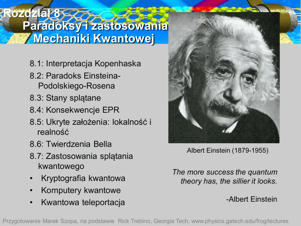 Rozdział 8 Paradoksy i zastosowania Mechaniki Kwantowej