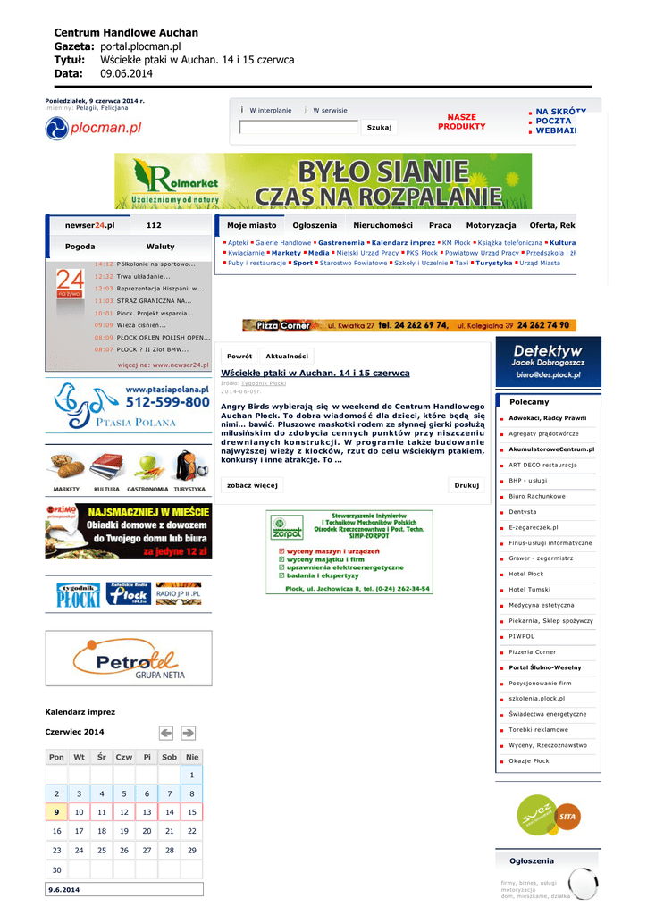 Centrum Handlowe Auchan Gazeta: portal.plocman.pl Tytu³: Wciek³e ptaki w Auchan. 14 i 15 czerwca Data: 09.06.2014 Poniedziałek, 9 czerwca 2014 r. imieniny: Pelagii, Felicjana i W interplanie j k l m n j W serwisie k l m n Szukaj newser24.pl 112 Moje miasto Pogoda Waluty Apteki Galerie Handlowe Kwiaciarnie 14:12 P ółkolonie na sportowo... Ogłoszenia Markety Puby i restauracje Sport Nieruchomości Gastronomia Media Praca Kalendarz imprez Miejski Urząd Pracy Starostwo Powiatowe NA SKRÓTY POCZTA WEBMAIL NASZE PRODUKTY PKS Płock Motoryzacja KM Płock Książka telefoniczna Powiatowy Urząd Pracy Szkoły i Uczelnie Taxi Oferta, Reklama Turystyka Kultura Przedszkola i żłobki Urząd Miasta 12:32 Trwa układanie... 12:03 Reprezentacja Hiszpanii w... 11:03 STRAŻ GRANICZNA NA... 10:01 Płock. Projekt wsparcia... 09:09 W i eża ciśnień... 08:09 PŁOCK ORLEN POLISH OPEN... 08:07 PŁOCK ? II Zlot BMW... Powrót Aktualności więcej na: www.newser24.pl Wściekłe ptaki w Auchan. 14 i 15 czerwca źródło: Tygodnik Pło c k i 2 0 1 4- 0 6- 09r. Angry Birds wybierają się w weekend do Centrum Handlowego Auchan Płock. To dobra wiadomoś ć dla dzieci, które będą się nimi… bawić. Pluszowe maskotki rodem ze słynnej gierki posłużą milusińskim do zdobycia cennych punktów przy niszczeniu drewnianych konstrukcji. W programie także budowanie najwyższej wieży z klocków, rzut do celu wściekłym ptakiem, konkursy i inne atrakcje. To ... zobacz więcej Drukuj Polecamy Adwokaci, Radcy Prawni Agregaty prądotwórcze AkumulatoroweCentrum.pl ART DECO restauracja BHP - u sługi Biuro Rachunkowe Dentysta E-zegareczek.pl Finus-u sługi informatyczne Grawer - zegarmistrz Hotel Płock Hotel Tumski Medycyna estetyczna Piekarnia, Sklep spożywczy PIWPOL Pizzeria Corner Portal Ślubno-Weselny Pozycjonowanie firm szkolenia.plock.pl Kalendarz imprez Świadectwa energetyczne Czerwiec 2014 Torebki reklamowe Wyceny, Rzeczoznawstwo Pon Wt Śr Czw Pi Sob Nie Okazje Płock 1 2 3 4 5 6 7 8 9 10 11 12 13 14 15 16 17 18 19 20 21 22 23 24 25 26 27 28 29 Ogłoszenia 30 9.6.2014 firmy, biznes, usługi motoryzacja dom, mieszkanie, działk a Centrum Handlowe Auchan Gazeta: portal.plocman.pl Tytu³: Wciek³e ptaki w Auchan. 14 i 15 czerwca Data: 09.06.2014 dam pracę imprezy trwające: * PŁOCKIE DNI RODZINY 16 maja - 15 czerwca 2014 r. 1. 17 maja (sobota) - Piknik Rodzinny Inauguracja Płockich Dni Rodziny Borowiczki: Szkoła Podstawowa Nr 20, teren Płockiego Towarzystwo Triathlonu DELTA, godz. 11 - 19 Organizatorzy: Urząd Miasta Płocka, Płocki Ośrodek Kultury i Sztuki, PTT DELTA Plan miasta wyszukaj: Szukaj Panorama firm Czego szukasz Gdzie szukasz Szukaj O nas | Polityka prywatności | Reklama | O "cookies" | Kontakt Copyright (c) 1996-2014 Plocman Sp. z o.o. Wszystkie prawa zastrzeżone http://tekturastudio.pl/