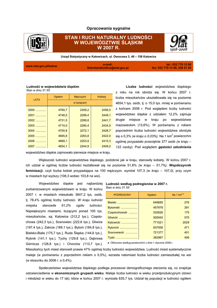 stan i ruch naturalny ludności w województwie śląskim w 2007 r.