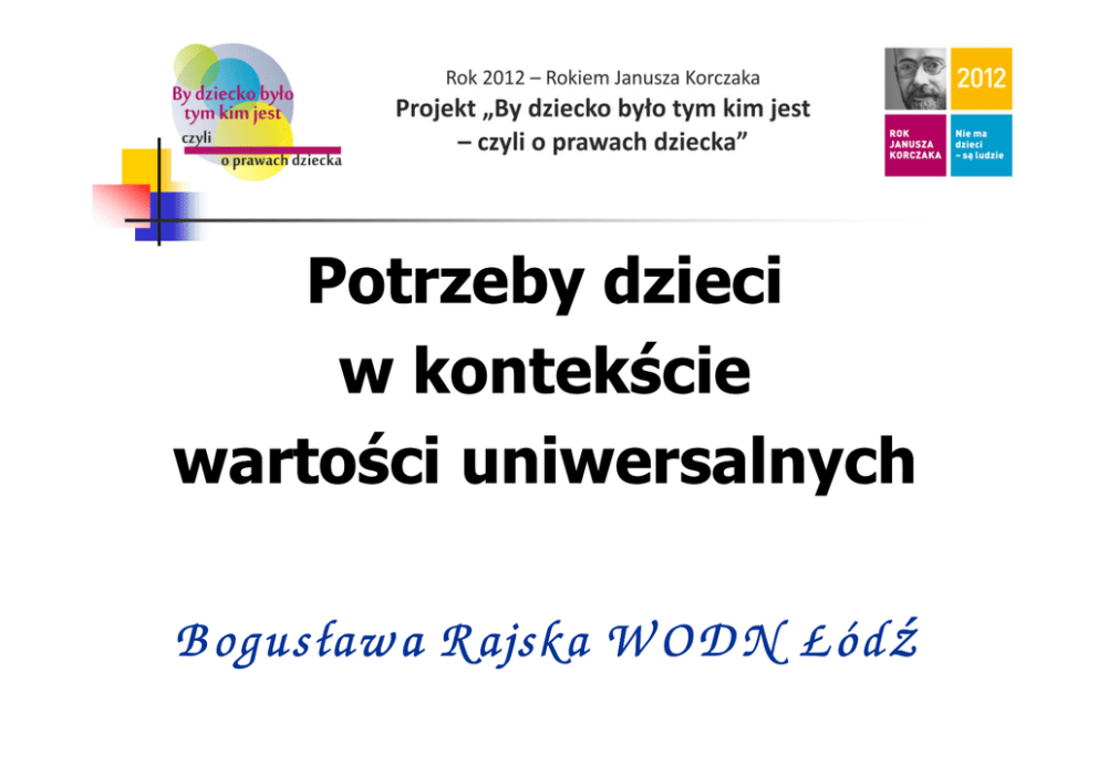 Potrzeby dziecka w kontekście wartości uniwersalnych