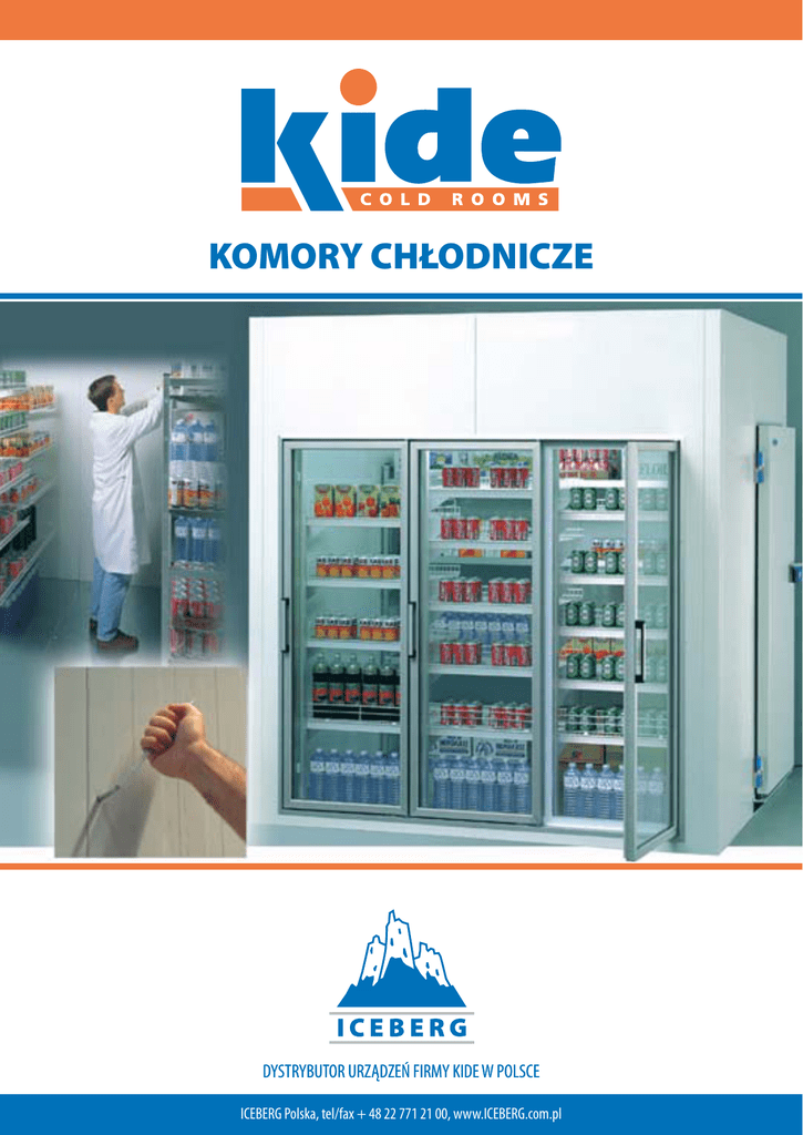 KOMORY CHŁODNICZE DYSTRYBUTOR URZĄDZEŃ FIRMY KIDE W POLSCE ICEBERG ICEBERGPolska, Polska tel/fax + 48 22 771 21 00 00,www.ICEBERG.com.pl www.ICEBERG.com.pl KOMORY CHŁODNICZE • • • • • chłodnie o różnych wymiarach i kształtach: kwadratowe, prostokątne, w kształcie litery L, narożne, cena dostosowana do wielkości chłodni i grubości płyty, system szybkiego montażu złączami typu camlock ze stali nierdzewnej, łatwy montaż i demontaż, całkowita izolacja, doskonała stabilność i perfekcyjna estetyka dzięki niewidocznym połączeniom. SPECYFIKACJA TECHNICZNA CHŁODNIE MODUŁOWE O MAKSYMALNEJ WEWNĘTRZNEJ WYSOKOŚCI 3700MM PANELE WERTYKALNE MODUŁ : GRUBOŚĆ : ŁĄCZENIE: POKRYCIE: 190mm 60,75,120,150 mm system typu camlock ze stali nierdzewnej stalowa blacha ocynkowana, biały lakier, bezpieczny dla żywności OPCJONALNIE: - stal nierdzewna ASI 304 2B - arkusz stali laminowany PVC IZOLACJA: Twarda poliuretanowa pianka Gęstość: 40Kg/m3 (+3 – 0 Kg/m3) Współczynnik przenikania ciepła U: Panel 60 = 0,38 W/m2 °C Panel 75 = 0,31 W/m2 °C Panel 100 = 0,23 W/m2 °C Panel 120 = 0,19 W/m2 °C Panel 150 = 0,15 W/ m2 °C Reakcja na ogień Cs3d0 PANELE PODŁOGOWE I DACHOWE Taka sama charakterystyka jak w przypadku paneli wertykalnych. PODŁAGA STANDARDOWA Podłoga laminowana powierzchnią antypoślizgową o całkowitej grubości 1mm. Nie zaleca się stosowania wózków na tym typie podłogi. PODŁOGA WZMOCNIONA Zewnętrzna warstwa ze sklejki brzozowej z powłoką antypoślizgową. Odpowiednia do użytkowania wózków. ICEBERG Polska tel/fax + 48 22 771 21 00 www.ICEBERG.com.pl KOMORY CHŁODNICZE ZALETY KOMÓR CHŁODNICZYCH Dostępne różne wysokości Perfekcja estetyczna Łatwy montaż System łączeń ze stali nierdzewnej typu camlock OPCJE Wzmocniona podłoga Antypoślizgowa stal galwanizowana 2/4mm Antypoślizgowa stal galwanizowana 3/5mm Siatka aluminiowa 2/4 DRZWI KIDE POWŁOKA Galwanizowany stalowy arkusz, biały lakier bezpieczny dla żywności, z ochronną usuwalną folią. Regulacja EN 10169 ŚRUBY I NAKŁADKI: stal nierdzewna AISI 304 MROŹNIE REZYSTANCJA 220 V DRZWI ZAWIASOWE MONTOWANE bezpośrednio na panelu drzwiowym o szerokości 940mm. Drzwi szersze wymagają zamontowania na ramie. DRZWI PRZESUWNE PROWADNICA: anodyzowane aluminium MONTOWANE na ramie, wykonane z lakierowanego aluminium DRZWI PRZESZKLONE Rama drzwi wykonana z adonizowanego aluminium. System zapobiegający parowaniu, przy każdym skrzydle zamontowano oświetlenie 58 W. Dostępne są różne wymiary. Poniżej przedstawiono przykładowe ceny dla różnych wymiarów i grubości 75mm. W przypadku zamówienia chłodni o nietypowych wymiarach prosimy kontakt z firmą ICEBERG w celu ustalenia cen. ICEBERG Polska tel/fax + 48 22 771 21 00 www.ICEBERG.com.pl KOMORY CHŁODNICZE C E N A D R Z W I WEWNĘTRZNA WYSOKOŚĆ: 2,00 wymiary zewnętrzne CENA bez podłogi z podłogą E U R O 0 , 9 0 WEWNĘTRZNA WYSOKOŚĆ: 2,28 Objętość CENA bez podłogi z podłogą X 1 , 9 0 WEWNĘTRZNA WYSOKOŚĆ: 2,66 Objętość CENA bez podłogi z podłogą GRUBOŚĆ 75mm długość szerokość Objętość W Z A W I A S O W E : Ze wzmocnioną podłogą cena wzrasta o 38,03 € za m2 podłogi. ICEBERG Polska tel/fax + 48 22 771 21 00 www.ICEBERG.com.pl ICEBERG +48 022 771 21 00 WWW.ICEBERG.COM.PL