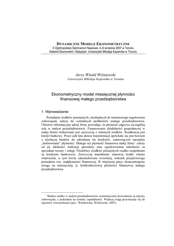 Jerzy Witold Wiśniewski Ekonometryczny model miesięcznej