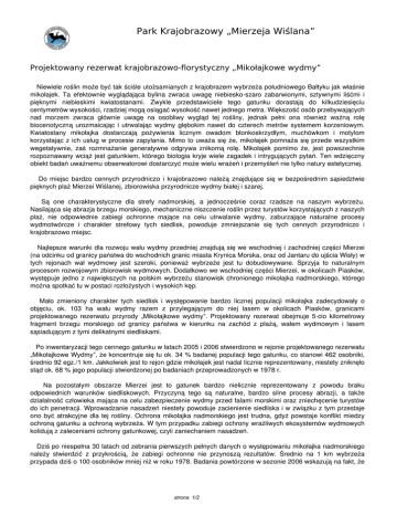 Park Krajobrazowy „Mierzeja Wiślana” Projektowany rezerwat krajobrazowo-florystyczny „Mikołajkowe wydmy” Niewiele roślin może być tak ściśle utożsamianych z krajobrazem wybrzeża południowego Bałtyku jak właśnie mikołajek. Ta efektownie wyglądająca bylina zwraca uwagę niebiesko-szaro zabarwionymi, sztywnymi liśćmi i pięknymi niebieskimi kwiatostanami. Zwykle przedstawiciele tego gatunku dorastają do kilkudziesięciu centymetrów wysokości, rzadziej mogą osiągać wysokość nawet jednego metra. Większość osób przebywających nad morzem zwraca głównie uwagę na osobliwy wygląd tej rośliny, jednak pełni ona również ważną rolę biocenotyczną urozmaicając i utrwalając wydmy głębokim nawet do czterech metrów systemem korzeniowym. Kwiatostany mikołajka dostarczają pożywienia licznym owadom błonkoskrzydłym, muchówkom i motylom korzystając z ich usług w procesie zapylania. Mimo to uważa się że, mikołajek pomnaża się przede wszystkim wegetatywnie, zaś rozmnażanie generatywne odgrywa znikomą rolę. Mikołajek pomimo że, jest powszechnie rozpoznawany wciąż jest gatunkiem, którego biologia kryje wiele zagadek i intrygujących pytań. Ten wdzięczny obiekt badań uważnemu obserwatorowi dostarczyć może wielu wrażeń i przemyśleń nie tylko natury estetycznej. Do miejsc bardzo cennych przyrodniczo i krajobrazowo należą znajdujące się w bezpośrednim sąsiedztwie pięknych plaż Mierzei Wiślanej, zbiorowiska przyrodnicze wydmy białej i szarej. Są one charakterystyczne dla strefy nadmorskiej, a jednocześnie coraz rzadsze na naszym wybrzeżu. Nasilająca się abrazja brzegu morskiego, mechaniczne niszczenie roślin przez turystów korzystających z naszych plaż, nie odpowiednie zabiegi ochronne mające na celu utrwalanie wydmy, zaburzające naturalne procesy wydmotwórcze i charakter strefowy tych siedlisk, powoduje zmniejszanie się tych cennych przyrodniczo i krajobrazowo miejsc. Najlepsze warunki dla rozwoju wału wydmy przedniej znajdują się we wschodniej i zachodniej części Mierzei (na odcinku od granicy państwa do wschodnich granic miasta Krynica Morska, oraz od Jantaru do ujścia Wisły) w tych rejonach wał wydmowy jest szeroki, ponieważ wybrzeże jest tu dobudowywane. Sprzyja to naturalnym procesom rozwojowym zbiorowisk wydmowych. Dodatkowo we wschodniej części Mierzei, w okolicach Piasków, występuje jedno z największych na polskim wybrzeżu stanowisk chronionego mikołajka nadmorskiego, którego można spotkać tu w postaci rozłożystych i wysokich kęp. Mało zmieniony charakter tych siedlisk i występowanie bardzo licznej populacji mikołajka zadecydowały o objęciu, ok. 103 ha wału wydmy razem z przylegającym do niej lasem w okolicach Piasków, granicami projektowanego rezerwatu przyrody „Mikołajkowe wydmy”. Projektowany rezerwat obejmuje 5-cio kilometrowy fragment brzegu morskiego od granicy państwa w kierunku na zachód z plażą, wałem wydmowym i lasem sąsiadującym z tymi delikatnymi siedliskami. Po inwentaryzacji tego cennego gatunku w latach 2005 i 2006 stwierdzono w rejonie projektowanego rezerwatu „Mikołajkowe Wydmy”, że koncentruje się tu ok. 34 % badanej populacji tego gatunku, co stanowi 462 osobniki, średnio 92 egz./1 km. Jakkolwiek jest to rejon gdzie mikołajek jest nadal licznie reprezentowany, niestety zniknęło stąd ok. 68 % jego populacji stwierdzonej po badaniach przeprowadzonych w 1978 r. Na pozostałym obszarze Mierzei jest to gatunek bardzo nielicznie reprezentowany z powodu braku odpowiednich warunków siedliskowych. Przyczyną tego są naturalne, bardzo silne procesy abrazji, a także działalność człowieka mająca na celu zabezpieczenie wydmy przed falami morskimi oraz zniechęcenie turystów do ich penetracji. Wprowadzanie nasadzeń niestety powoduje zacienienie siedliska i w związku z tym przestaje ono być atrakcyjne dla tej rośliny. Ochrona mikołajka nadmorskiego jest trudna, gdyż powstaje konflikt miedzy ochroną gatunku a ochroną wybrzeża. W tym przypadku zabiegi ochrony wrażliwych ekosystemów wydmowych kolidują z zaleceniami ochrony gatunkowej, czyli zaniechaniem nasadzeń. Dziś po niespełna 30 latach od zebrania pierwszych pełnych danych o występowaniu mikołajka nadmorskiego należy stwierdzić z przykrością, że zabiegi ochronne nie przynoszą rezultatów. Średnio na 1 km wybrzeża przypada dziś o 100 osobników mniej niż w roku 1978. Badania powtórzone w sezonie 2006 wskazują na fakt, że strona 1/2 proces zaniku mikołajka nadmorskiego wciąż trwa (obniżenie liczby egzemplarzy na poszczególnych kilometrach). Przeprowadzone badania dowiodły, że spadek liczebności populacji mikołajka na Mierzei Wiślanej jest znaczny, a wprowadzane na tym terenie nowe nasadzenia najprawdopodobniej przyspieszą proces zaniku tego pięknego gatunku, który jest symbolem polskiego wybrzeża. Projektowany rezerwat obejmie także jedno z najbogatszych stanowisk lnicy wonnej - gatunku ważnego dla Wspólnoty i endemita wybrzeża południowego Bałtyku. Roślinność porastająca wydmy spełnia tu szczególnie ważna role ochronną, zabezpieczając piaski wydmowe przed rozwiewaniem i rozmywaniem. Na wydmie białej znajdującej się w bezpośrednim sąsiedztwie plaży, spotkamy: piaskownicę zwyczajną, wydmuchrzycę piaskową, oraz honkenię piaskową oraz lnicę wonną. Gatunki te jako pionierskie zasiedlają niegościnne, nie ustabilizowane piaski tworzących się wydm. Do gatunków, które napotkamy na wydmie szarej nalezą: szczotlicha siwa, turzyca piaskowa, kocanki piaskowe, jasieniec piaskowy, fiołek trójbarwny, groszek nadmorski, kruszczyk rdzawoczerwony i mikołajek nadmorski. Na szczytach wydm przesuszonych i smaganych nadmorskimi wiatrami można spotkać liczne porosty, miedzy innymi chrobotki oraz chronioną płucnicę islandzką. strona 2/2 Powered by TCPDF (www.tcpdf.org)