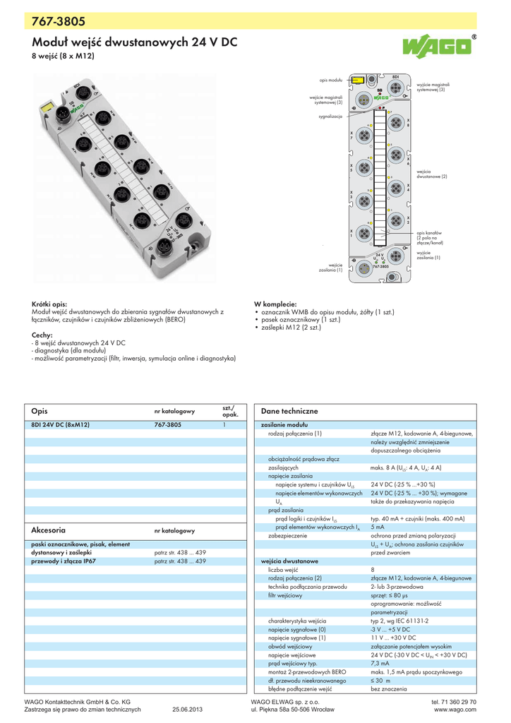 767-3805, Moduł wejść dwustanowych 24 V DC