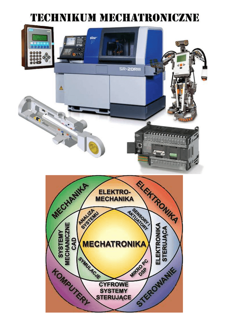 Czym jest mechatronika Mechatronika jest dziedziną interdyscyplinarną łączącą mechanikę precyzyjną, elektronikę, informatykę oraz inne techniczne i nietechniczne obszary w jedną, zintegrowaną całość. Obejmuje zatem dyscypliny, które warunkują wysokie kompetencje zawodowe na współczesnym rynku pracy. Przedmiotem zainteresowań i zastosowań mechatroniki są między innymi: urządzenia automatyki, roboty przemysłowe, układy sterowania pojazdami, obrabiarki sterowane numerycznie, aparatura medyczna, informatyka, zaawansowany sprzęt gospodarstwa domowego. Dziś w mechatronice trwa udoskonalanie technik przekazywania informacji, co wydatnie zwiększa możliwości użytkowe mikroprocesorów. Obecnie, w większości tych układów wykorzystujących w różnym stopniu bazy danych stosuje się układy inteligentnego sterowania. Nawet w urządzeniach powszechnego użytku, takich jak automatyczna pralka instaluje się układy oparte na sztucznej inteligencji. Wiele wyrafinowanych układów mechatronicznych znalazło szerokie zastosowanie w przemyśle samochodowym. Systemy nawigacji, które tak niedawno były rzadkością instaluje się już w pojazdach seryjnych. W niedalekiej przyszłości na pewno wprowadzone zostaną jeszcze inteligentniejsze wyroby mechatroniczne, podnoszące atrakcyjność naszych pojazdów samochodowych i nie tylko..... W tym zawodzie zdobędziesz umiejętności: Absolwentów mechatroniki cechuje bardzo wszechstronne wykształcenie. Podczas nauki rozwijają oni umiejętność systemowego myślenia, łączenia abstrakcji i konkretów, formułowania i rozwiązywania problemów. Dlatego też przyszli mechatronicy są szczególnie poszukiwani na dynamicznie zmieniającym się rynku pracy. Technik mechatronik projektuje i wytwarza części i zespoły maszyn oraz urządzeń mechanicznych z wykorzystaniem technik komputerowych. Wykorzystuje w swojej pracy nowoczesne techniki sterowania maszynami i urządzeniami łączące w sobie elektronikę, informatykę, mechanikę, automatykę i robotykę. Pozyskuje, ocenia i tworzy dokumentację techniczną do urządzeń i układów mechatronicznych. Dobiera elementy, podzespoły, zespoły, moduły, wskaźniki, połączenia do urządzeń i systemów mechatronicznych. Przygotowuje elementy, wskaźniki, podzespoły i zespoły do montażu, nastawia ich parametry i nadzoruje ich montaż oraz demontaż. Projektuje i opracowuje procesy technologiczne produkcji części urządzeń i układów mechatronicznych. W wyniku realizacji kształcenia w zawodzie Technik Mechatronik uczeń zdobywa kwalifikacje: E.3. – Montaż urządzeń i systemów mechatronicznych E.18. – Eksploatacja urządzeń i systemów mechatronicznych E.19. – Projektowanie i programowanie urządzeń i systemów mechatronicznych Nabyte umiejętności po skończeniu szkoły: Programowania i obsługi obrabiarek sterowanych numerycznie CNC Programowania i obsługi sterowników PLC Obsługi programów komputerowych do projektowania przestrzennego typu: CAD, CAM Tworzenia układów pneumatycznych oraz elektropneumatycznych Tworzenia układów hydraulicznych oraz elektrohydraulicznych Obsługi oraz programowania robotów i układów manipulacyjnych Projektowania, instalowania i obsługiwania nowoczesnych urządzeń mechatronicznych i linii produkcyjnych Komputerowego wspomagania projektowania i wytwarzania Diagnozowania stanu urządzeń i systemów mechatronicznych oraz wykonywania ich naprawy Tworzenia, naprawiania i obsługiwania układów mechatronicznych Programowania i nastawiania parametrów urządzeń i systemów mechatronicznych Instalowania i obsługi systemów sieciowych transmisji danych stosowanych w mechatronice Projektowania układów sterujących i regulujących pracę różnych urządzeń Samodzielnego opracowywania dokumentacji technicznej urządzeń i systemów mechatronicznych Sporządzania protokołów uszkodzeń, awarii i przeprowadzonych napraw Perspektywy zatrudnienia: Poniżej podajemy kilka przykładów wycinków z artykułów zamieszczonych w prasie oraz na stronach internetowych dotyczących zapotrzebowania na absolwentów między innymi Technikum Mechatronicznego, zarówno w naszym kraju, jak również w Unii Europejskiej: Więcej na: http://biznes.onet.pl/pracownicy-przyszlosci,18596,3151157,1,prasa-detal Więcej na: http://biznes.onet.pl/niemcy-zapraszaja-polska-mlodziez-na-praktyki,18563,3325083,1,prasa-detal Czyli tacy pracownicy których brakuje na rynku pracy !!! Więcej na: http://biznes.onet.pl/internet-zdominuje-zawody-przyszlosci,18563,4012184,1,prasa-detal Gdzie szukać pracy ? Mechatronika znajduje zastosowanie zarówno w dużych przedsiębiorstwach, jak i w małych zakładach produkcyjnych. Do przykładowych urządzeń mechanicznych należą między innymi: układy i urządzenia automatyki, układy napędowe, obrabiarki sterowane numerycznie, układy i urządzenia elektroniki i automatyki samochodowej, aparatura medyczna, nowoczesne instalacje w budynkach mieszkalnych (automatyka budynków, „centralne” odkurzacze, alarmy, bramy garażowe itp.) oraz instalowanie i naprawa zaawansowanego sprzętu gospodarstwa domowego (np. piece z automatycznym nadmuchem) Zapotrzebowanie na techników mechatroników pojawia się wszędzie tam, gdzie potrzebna jest fachowa wiedza techniczna dla rozmaitych zastosowań. Technicy mechatronicy mogą podejmować pracę we wszystkich gałęziach przemysłu związanych z nowoczesnymi technologiami (niemal w każdym zakładzie przemysłowym). Zawód ten charakteryzuje się uniwersalnością na współczesnym rynku pracy. Szczególnie w dzisiejszych czasach zawód technika mechatronika jest bardzo interesujący, ponieważ daje absolwentowi duże spektrum możliwości zatrudnienia. Przykładem może być branża samochodowa - wiele firm oraz osób prywatnych otwiera obecnie zakłady mechatroniki samochodowej, gdzie potrzebna jest fachowa wiedza zarówno mechaniczna, jak i elektroniczna do napraw związ