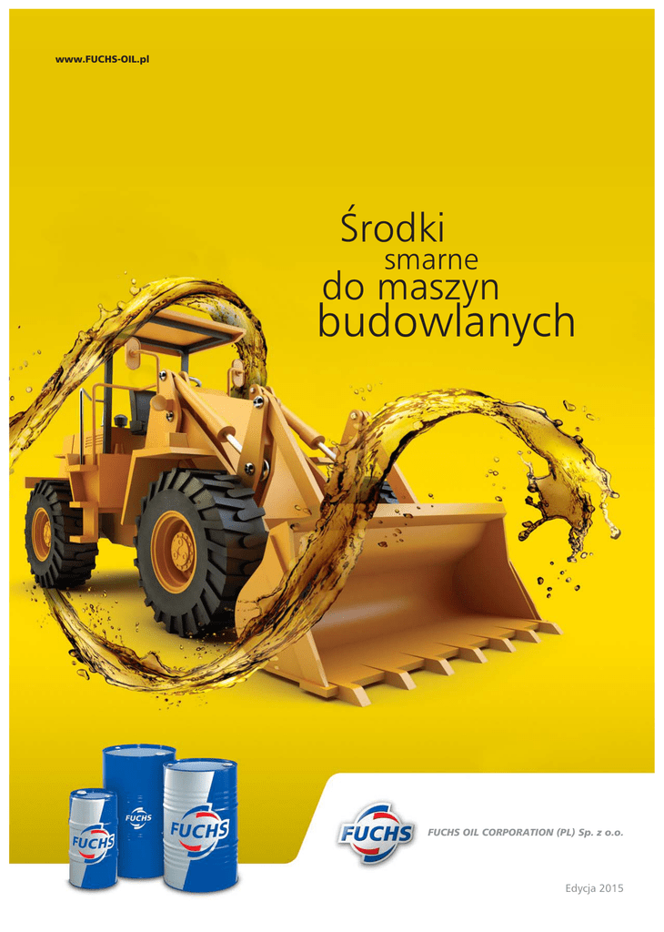 www.FUCHS-OIL.pl Środki smarne do maszyn budowlanych FUCHS OIL CORPORATION (PL) Sp. z o.o. Edycja 2015 LUBRICANTS. TECHNOLOGY. PEOPLE. ■ Bliskość znamy swoich klientów i wsłuchujemy się w ich potrzeby, co pozwala nam tworzyć rozwiązania skrojone na miarę ■ Kompetencje specjalizujemy się i koncentrujemy na najwyższej jakości naszych środków smarnych ■ Przyszłość nasze nowoczesne środki smarne pozwalają chronić cenne zasoby naturalne Wiedza i kompetencje Od wielu lat firma Fuchs dostarcza środki smarne producentom silników, przekładni i hydrauliki - jako doświadczony, niezależny producent środków smarnych koncentrujemy się wyłącznie na produktach najwyższej jakości. Dzięki znajomości wymagań technicznych zawsze oferujemy najbardziej wydajne produkty, dopasowane do każdej maszyny, mogące pracować o każdej porze roku. 2 W naszej ofercie znajdują się smary do łożysk pojazdów i maszyn, oleje hydrauliczne do najróżniejszych zastosowań, oleje silnikowe i przekładniowe do wszystkich pojazdów pracujących w ciężkich warunkach. W naszych laboratoriach na całym świecie, wyposażonych w najnowsze technologie, stale trwają prace nad nowymi produktami. Dzięki temu zachowujemy czołową pozycję w wielu dziedzinach zastosowań środków smarnych. SPIS TREŚCI Oleje 4 Płyny do układów chłodzenia 11 Smary 12 Oleje biodegradowalne 14 Pozostałe 15 Laboratorium 16 Internetowy serwis doboru środków smarnych 18 3 OLEJE Specyfikacje Dopuszczenia Rekomendacje FUCHS Najwyższej jakości olej silnikowy w technologii XTL. Opracowany specjalnie do pojazdów użytkowych wyposażonych w nowoczesne systemy oczyszczania spalin i turbodoładowanie. Gwarantuje bardzo łatwy rozruch silnika w niskich temperaturach otoczenia, posiada wysoką odporność na starzenie, zapewnia ograniczenie zużycia paliwa w całym okresie eksploatacji. ACEA E6 DEUTZ DQC IV-10 LA MACK EO-N MAN M 3477 MB-APPROVAL 228.51 MTU DDC TYPE 3.1 RENAULT RXD/RLD-2 VOLVO VDS-3 ACEA E7, IVECO 18-1804 CLASSE TLS E6 Najwyższej jakości olej silnikowy w technologii XTL. Opracowany specjalnie do pojazdów użytkowych wyposażonych w nowoczesne systemy oczyszczania spalin i turbodoładowanie. Gwarantuje łatwy rozruch silnika w niskich temperaturach otoczenia, posiada wysoką odporność na starzenie, zapewnia ograniczenie zużycia paliwa w całym okresie eksploatacji. ACEA E9/E7/E6 API CI-4 CATERPILLAR ECF-1-a JASO DH-2 DEUTZ DQC IV-10 LA MACK EO-M PLUS MACK EO-N MAN M 3271-1 MAN M 3477 MB-APPROVAL 228.51 MB-APPROVAL 235.28 MTU DDC TYPE 3.1 RENAULT RXD/RGD/ RLD-2, VOITHRETARDER „B“ VOLVO VDS-3 / CNG, SCANIA LA CUMMINS CES 20077 DAF MAN M 3277 CRT IVECO 18-1804 CLASSE TLS E9 TITAN CARGO MAXX LD SAE 10W-40 Olej silnikowy do mocno obciążonych pojazdów użytkowych z silnikami diesla i gazowymi, gwarantujący najwyższe osiągi i redukcję zużycia paliwa. Spełnia wymagania specyfikacji SCANIA Low Ash. ACEA E7/E6/E4 API CI-4 JASO DH-2 SCANIA LA TITAN CARGO SL SAE 5W-30 Najwyższej jakości, redukujący zużycie paliwa olej przeznaczony do pojazdów użytkowych z silnikami diesla na najdłuższe przebiegi. ACEA E7/E4 CUMMINS CES 20077 DEUTZ DQC IV-10 FORD WSSM2C212-A1 MACK EO-N MAN M 3277 MB-APPROVAL 228.5 MTU DDC TYPE-3 RENAULT RXD / RLD-2 SCANIA LDF-3 VOLVO VDS-3 DAF IVECO 18-1804 TFE TITAN CARGO MC SAE 10W-40 Najwyższej jakości olej na bazie MC na najdłuższe przebiegi do samochodów ciężarowych i maszyn budowlanych z silnikami diesela. Ogranicza zużycie paliwa. ACEA E7/E4 API CI-4 GLOBAL DHD-1 CUMMINS CES 20077/8 DETROIT DIESEL 93K215 DEUTZ DQC III-10 MACK EO-M PLUS / EO-N MAN M 3277 MB-APPROVAL 228.5 MTU DDC TYPE-3 RENAULT RXD/RLD-2 SCANIA LDF-2 VOLVO VDS-3 DAF IVECO 18-1804 SDFG OM-1901A Oleje silnikowe TITAN CARGO MAXX SAE 5W-30 XTL L ® TECHNOLOGY TITAN CARGO MAXX SAE 10W-40 XTL L ® TECHNOLOGY 4 Oleje OLEJE Oleje silnikowe Specyfikacje Dopuszczenia Rekomendacje FUCHS TITAN CARGO SAE 5W-40 Najwyższej jakości, redukujący zużycie paliwa olej silnikowy opracowany specjalnie do pojazdów użytkowych napędzanych turbodoładowanymi silnikami diesla z wydłużonymi okresami wymiany oleju i wyposażonymi w systemy oczyszczania spalin. ACEA E9/E7 API CJ-4 CAT ECF-2/ECF-3 CUMMINS CES 20081 DETROIT DIESEL 93K218 DEUTZ DQC II-10 LA FAWDE Q/XC 31352007 MACK EO-O PREMIUM PLUS MAN M 3575 MB-APPROVAL 228.31 RENAULT RLD-3 VOLVO VDS-4 DETROIT DIESEL 93K214 / 93K215 TITAN CARGO SAE 15W-40 Najwyższej jakości, redukujący zużycie paliwa olej silnikowy do pojazdów użytkowych napędzanych turbodoładowanymi silnikami diesla. Opracowany specjalnie do pojazdów VOLVO z wydłużonymi okresami wymiany oleju i wyposażonymi w systemy oczyszczania spalin. ACEA E9/E7 API CJ-4/CI-4 PLUS/ CI-4 CAT ECF-2/ECF-3 CUMMINS CES 20081 DEUTZ DQC III-10 LA DETROIT DIESEL 93K218 FAWDE Q/XC 3135-2007 MACK EO-O PREMIUM PLUS MAN M 3575/3275-1 MB-APPROVAL 228.31 MTU DDC TYPE 2.1 RENAULT RLD-3 VOLVO VDS-4 ALLISON C-4 TITAN UNIMAX ULTRA MC SAE 10W-40 Najwyższej jakości, ograniczający zużycie paliwa olej na bazie MC do samochodów ciężarowych i maszyn budowlanych. ACEA E7/B4/B3/A3 API CI-4 GLOBAL DHD-1 JASO DH-1 CUMMINS CES 20077/8 DETROIT DIESEL 93K215 DEUTZ DQC III-10 MACK EO-M PLUS MAN M 3275-1 MB-APPROVAL 228.3 / 229.1 / 235.27 MTU DDC TYPE-2 RENAULT RLD / RLD-2 VOITH-RETARDER “A” VOLVO VDS-3 ALLISON C-4 CAT ECF-2 CUMMINS CES 20071/2/6 DAF VW 500 00/501 01/505 00 TITAN UNIMAX PLUS MC SAE 10W-40 Najwyższej jakości, ograniczający zużycie paliwa olej na bazie MC do samochodów ciężarowych i maszyn budowlanych. ACEA E7/B3/A3 API CH-4 CUMMINS CES 20077 DEUTZ DQC II-10 MAN M 3275-1 MB-APPROVAL 228.3 MB-APPROVAL 229.1 MB-APPROVAL 235.27 MTU DDC TYPE-2 RENAULT RD / RD-2 VOITH-RETARDER „A“ VOLVO VDS-2 ALLISON C-4 CUMMINS CES 20071/2/6 DAF MACK EO-M PLUS SCANIA 5 OLEJE Oleje silnikowe 6 Specyfikacje Dopuszczenia Rekomendacje FUCHS ALLISON C-4 CAT TO-2 CASE MS 1121 CUMMINS CES 20071/2 IVECO 18-1804 CLA