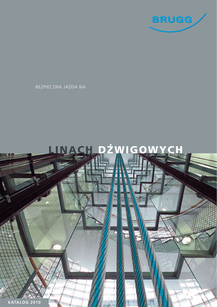 BEZPIECZNA JAZDA NA LINACH DŹWIGOWYCH k ata l o g 2 0 1 0 2 Spółka Akcyjna Brugg Drahtseil AG jest jednym z wiodących producentów wysokiej jakości lin nośnych oraz lin ogranicznika. Od dziesięcioleci nasze liny sprawdziły się w użytku i transportują codziennie bezpiecznie oraz komfortowo miliony pasażerów. Szczególnie w szybkich urządzeniach i wysokich obiektach liny nośne dźwigów wykazały się znakomitą sprawnością, zapewniając przy tym spokojny bieg, ponadprzeciętną żywotność oraz wysoką ekonomiczność. Tworzenie nowych oraz innowacyjnych produktów, ciągłe ulepszanie już istniejących produktów oraz optymalizacja przebiegu produkcji powoduje, że klienci firmy Brugg wciąż mogą polegać na stale wysokiej jakości produktów oraz zawsze mogą sięgać po najsprawniejsze produkty. Aby naszym klientom umożliwić większą elastyczność oraz większy zakres innowacyjności produkujemy liny nośne oraz liny ogranicznika również według stosownych specyfikacji klienta. Wspólnie z partnerami odpowiedzialnymi za logistykę i dystrybucję zapewniamy na całym świecie, że nasze prawidłowo opakowane i oznaczone produkty są we właściwym czasie we właściwym miejscu dostępne dla naszych klientów. Cechy naszych usług przekonują. Dlatego nie tylko międzynarodowe koncerny budujące dźwigi, ale również coraz więcej średnich i małych przedsiębiorstw decyduje się na liny nośne dźwigów firmy Brugg. Spółka Brugg jest certyfikowana według ISO 9001:2000. Usługi 4 Referencje 5 LINY DŹWIGOWE 6 Wybór liny zakres zastosowania 8 nazwa i klasyfikacja 10 Liny nośne 8x19 11 SC8 12 MCX9 13 DP9 14 SCX9 15 HRS 16 TSR 17 Liny ogranicznika 6 x19 18 6 x19 SC 19 8 x19 20 Liny z przewodami elektrycznymi ECO 21 WSKAZÓWKI 22 Wybór liny porównanie właściwości lin nośnych dźwigów i-LINE Postępowanie z linami transport, przechowywanie przewijanie, rozwijanie, wciąganie smarowanie lin stan rowków, regulowanie liny napięcie liny, zabezpieczenie przed rozkręceniem kryteria wymiany OSPRZĘT 24 25 26 27 28 29 30 31 32 Zawieszenia linowe APAG zaprasowana końcówka gwintowana 34 śruba z uchem i kauszą zaprasowana 35 zamek linowy symetryczny / asymetryczny 36 montaż oraz zabezpieczenie martwego końca liny 38 zacisk kabłąkowy liny 39 Amortyzatory sprężyna 40 zderzak elastomerowy 41 Zestawy lin drzwiowych / lina drzwiowa zestaw lin TSS / zestaw lin SMZ 42 lina drzwiowa FLEX 43 Łańcuchy wyrównawcze WCA / WCS 44 zestawy do zawieszenia 46 Środki pomocnicze nożyce do cięcia liny stalowej, pończocha linowa 47 przyrząd RPM do pomiaru napięcia lin 48 przyrząd RLD do smarowania lin / środek pielęgnacyjny VT LUBE 49 Opakowanie 50 Kontakt 51 4 Usługi dostawca systemowy produkty Jesteśmy oferentem systemowym i oferujemy Państwu liny nośne dźwigów, osprzęt oraz środki pomocnicze w wielu różnych wersjach, również z montażem częściowym lub jako pojedyncze części. Posiadamy szeroki asortyment, który pozwala na dostarczenie potrzebnych do zastosowania przez Państwa części. Jeśli nie znajdą Państwo w naszym katalogu konkretnego produktu prosimy o pytania. W przypadku specjalnych wymagań wobec produktu z przyjemnością opracujemy dla Państwa specyficzne rozwiązanie. Nasze produkty standardowe produkujemy na życzenie również w różnych innych wersjach (wytrzymałość liny, kierunek i rodzaj splotu, średnica nominalna liny, materiał oraz powierzchnia). Wszystkie nasze produkty spełniają wymogi obowiązujących norm międzynarodowych. dyspozycyjność usługa ekspresowa Dostarczamy na terenie całej Polski, terminowo w ciągu jednego dnia roboczego, bezpośrednio z naszego dużego magazynu do Państwa zakładu lub na budowę. W nagłych przypadkach przygotujemy w ciągu jednej godziny potrzebny materiał loco fabryka. szkolenia/seminaria fachowe W celu kształcenia oraz doskonalenia zawodowego Państwa pracowników oferujemy Państwu specjalistyczne szkolenia nt. lin nośnych dźwigów. techniczna obsługa serwisowa klientów Służymy wsparciem oraz radą zarówno na miejscu jak również u nas w zakładzie czy w siedzibie Państwa firmy. Referencje 5 69 m wieża Platinum Tower – Tel Aviv (Izrael) 105 m wieżaMesseturm – Bazylea (Szwajcaria) 130 m Castor – Frankfurt (Niemcy) 135 m Nürnberger Versicherung – Norymberga (Niemcy) Torre Mayor 225 m 138 m Twintower – Wiedeń (Austria) 153 m Fairmont (Park Plaza) – Dubai (ZEA) Telekom HQ 310 m 169 m Shalom Centre – Tel Aviv (Izrael) 177 m Millenium Tower – Wiedeń (Austria) 213 m Shangria-La – Hong Kong (Chiny) 218 m Shang Mao Real Estate – Nanjing (Chiny) 225 m Torre Mayor – Meksyk (Meksyk) 233 m Harbourfront – Hong Kong (Chiny) Oriental Perl 468 m 280 m Republic Plaza – Singpur (Singapur) 280 m Ministerstwo Spraw Zagranicznych – Moskwa (Rosja) 284 m Tomorrow Square – Szanghaj (Chiny) 288 m Plaza 66 – Szanghaj (Chiny) 310 m Telekom HQ – Kuala Lumpur (Malezja) 351 m Stratosphere Tower – Las Vegas (USA) 468 m Oriental Perl – Szanghaj (Chiny) 452 m Petronas Tower – Kuala Lumpur (Malezja) 448 m Federation Tower – Moskwa (Rosja) 449 m Empire State Building – Nowy Jork (USA) CN Tower 553 m Federation Tower 448 m 553 m CN Tower – Toronto (Kanada) 6 Liny nośne dźwigów firmy Brugg to synonim najwyższej jakości. Aby nasi klienci mogli polegać na stale jednakowo doskonałej jakości naszych produktów stosujemy przed, w trakcie oraz po produkcji kompleksowy system wytycznych, testowania oraz kontroli. Już materiał do produkcji drutu wybierany jest z ogromną starannością. Materiały surowe nabywamy jedynie u dostawców, którzy zawsze spełniają nasze wysokie wymagania. Nowoczesna technologia produkcji oraz szczególnie też wieloletnie doświadczenie naszych wykwalifikowanych pracowników to dalsze istotne czynniki odpowiedzialne za wysoką jakość produktów. Abyśmy bez przerwy mogli gwarantować jakość produktu, na lin