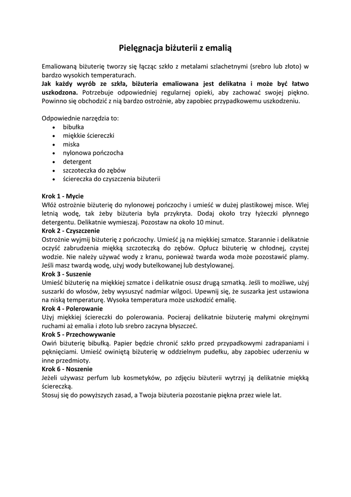 Pielęgnacja biżuterii z emalią - Deja-Art