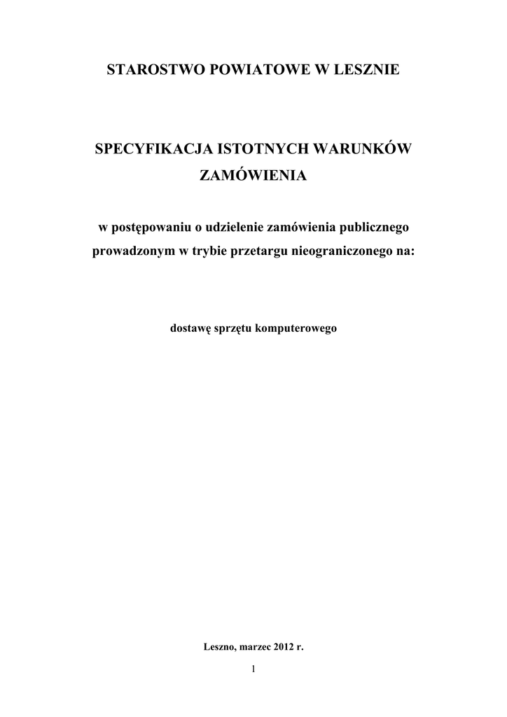 starostwo powiatowe w lesznie specyfikacja istotnych warunków