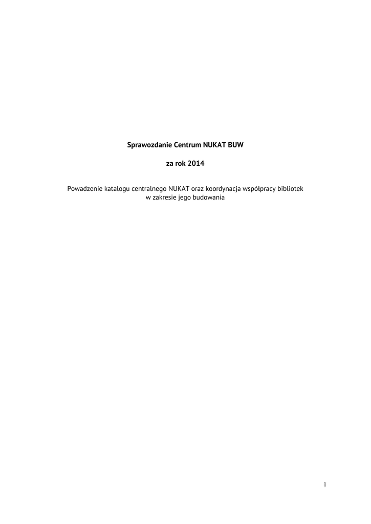 Sprawozdanie Centrum NUKAT BUW za rok 2014