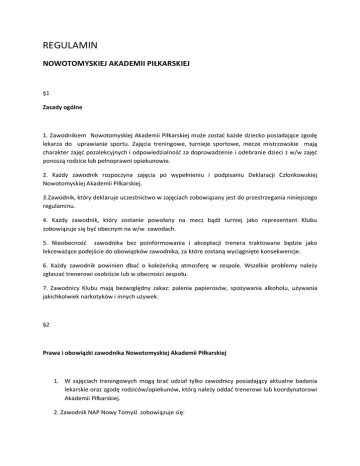 REGULAMIN - Nowotomyska Akademia Piłkarska